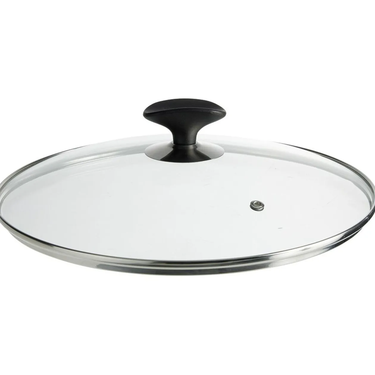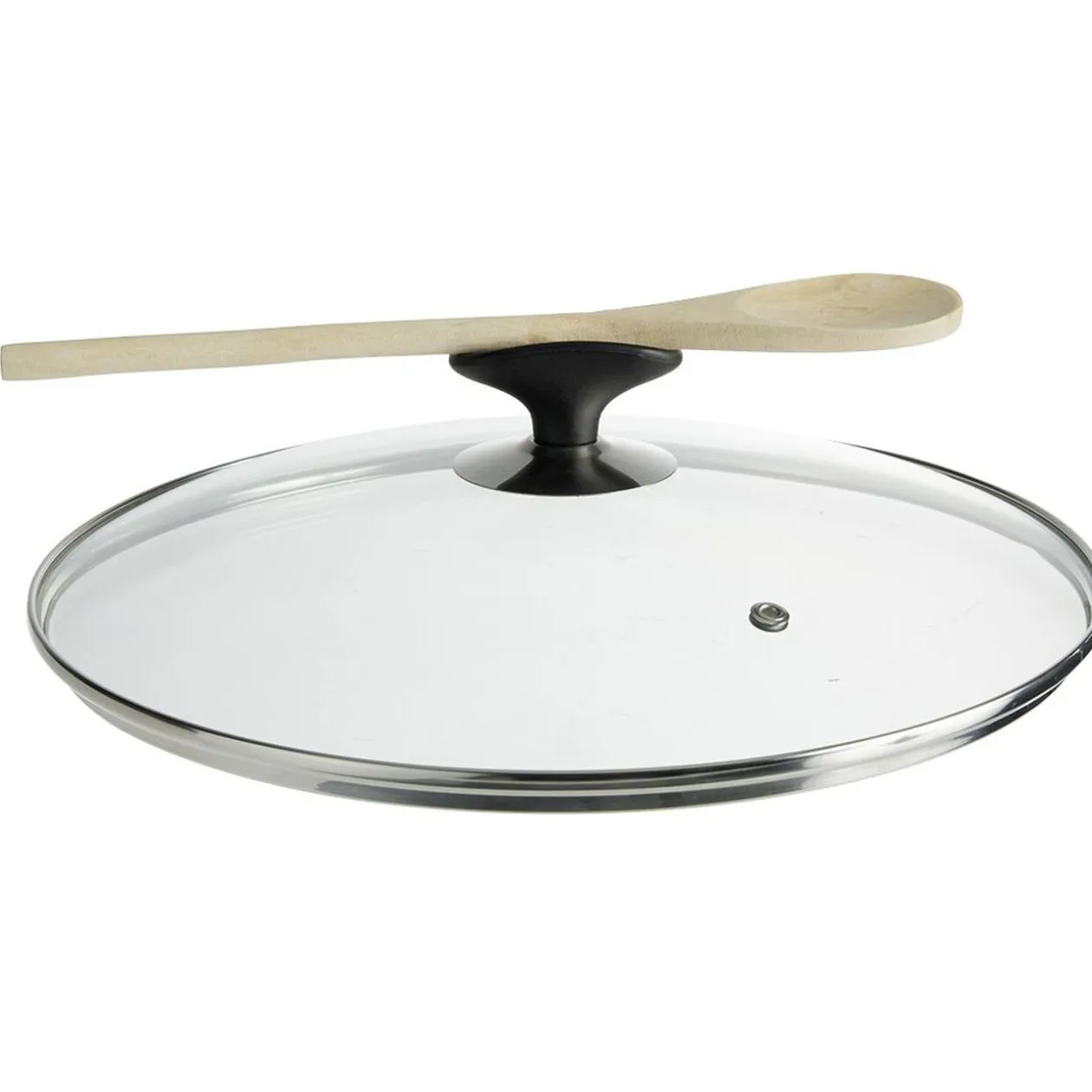Protégez votre cuisine des projections grâce à ce couvercle anti-éclaboussures en verre trempé de Ø28 cm et doté d’une poignée repose-ustensile en plastique noir.