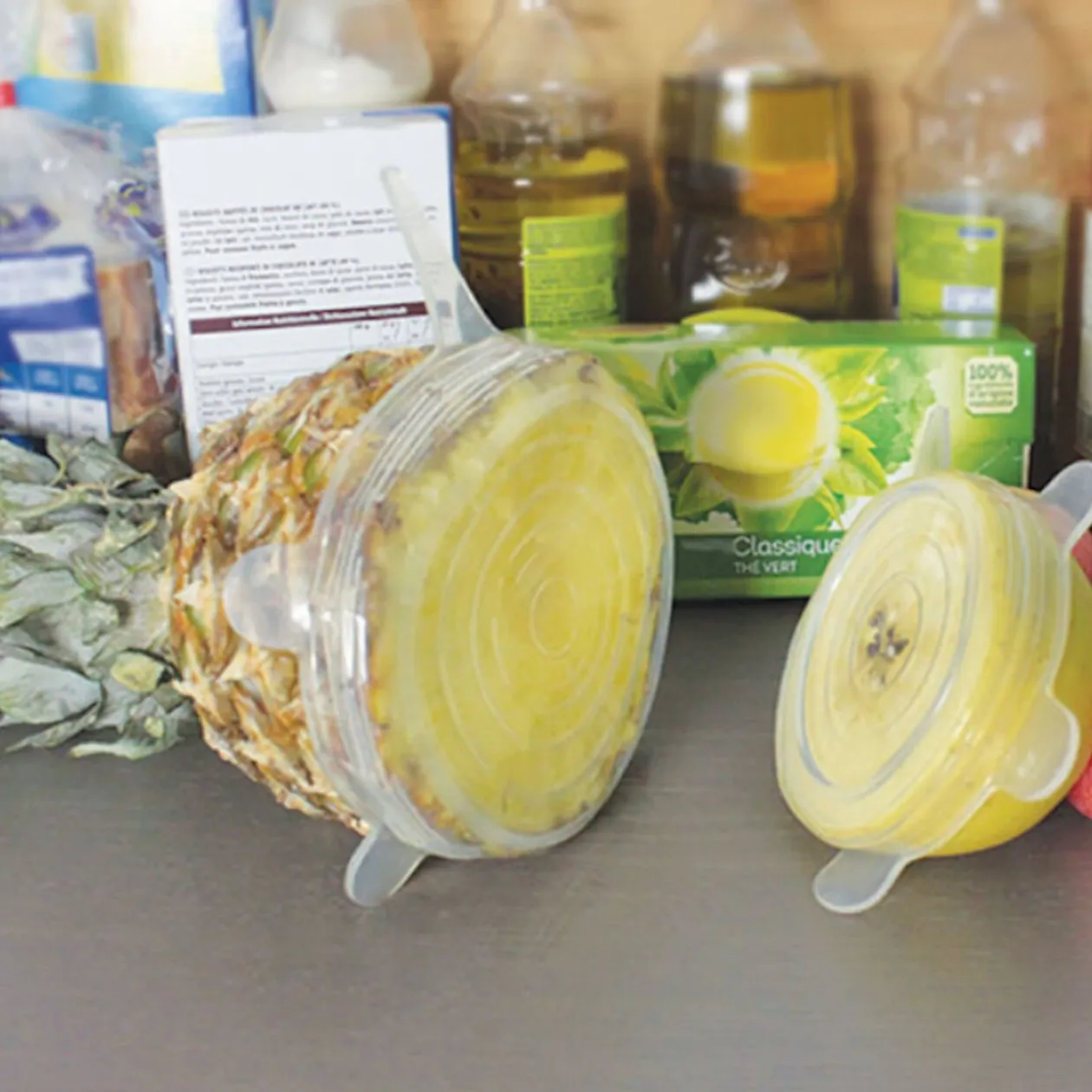Fini le film plastique qui se déchire ! Ce lot de 4 couvercles en silicone extensible lavables et réutilisables vous permettra de couvrir hermétiquement tous vos contenants alimentaires.