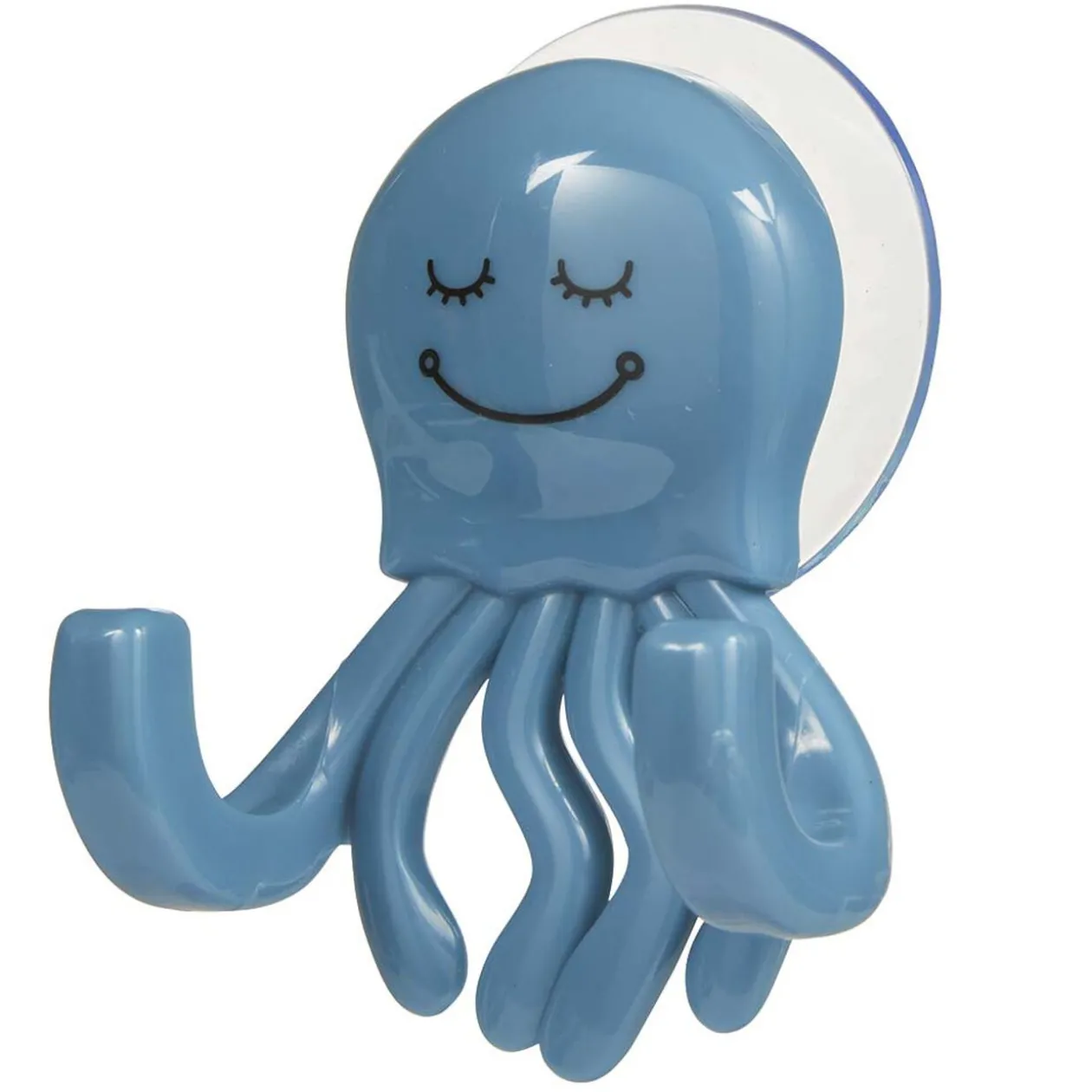 Crochet double à ventouse en forme de pieuvre de couleur bleue.