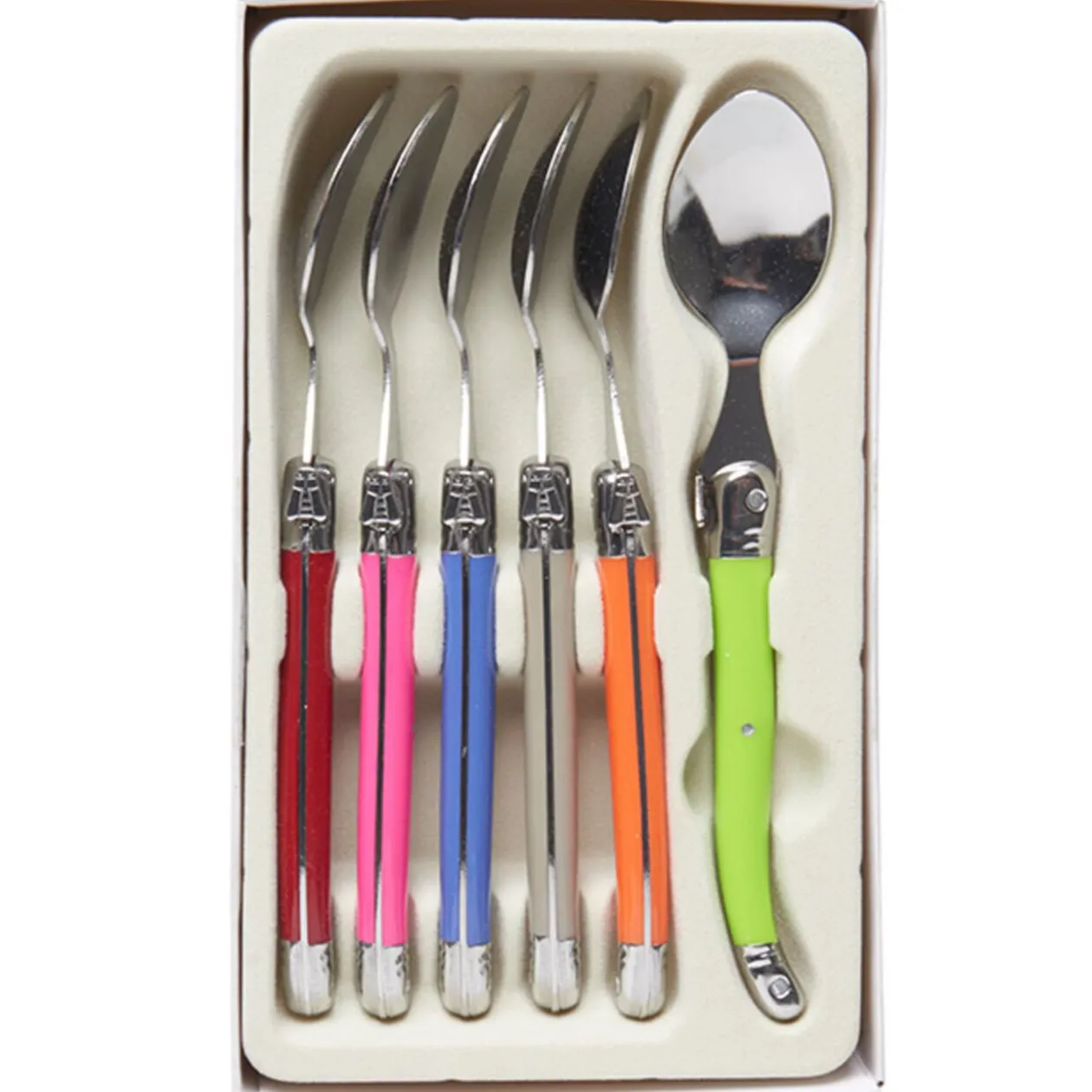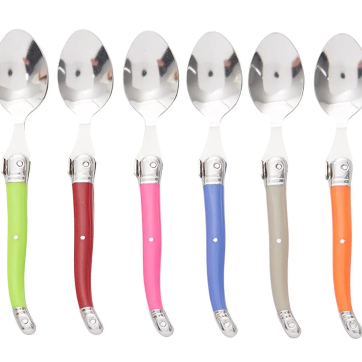 6 cuillères à café, lame en inox et manche en plastique, L. 15 cm.