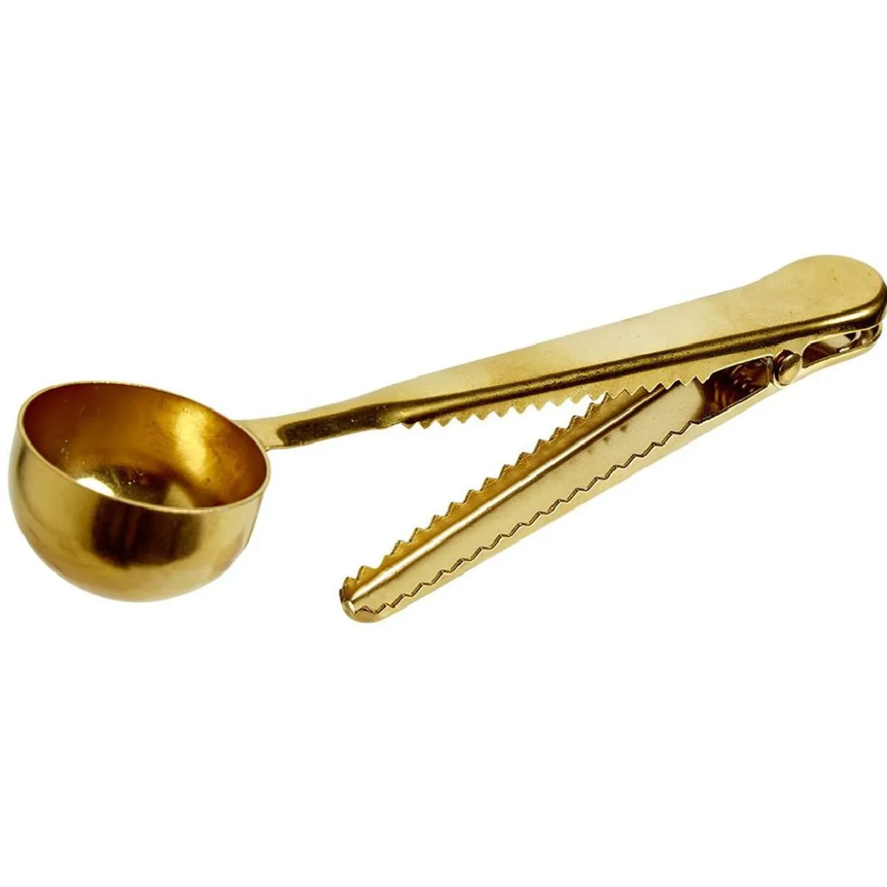 Cuillère pince sachet en inox doré, idéale pour optimiser la conservation de vos aliments.