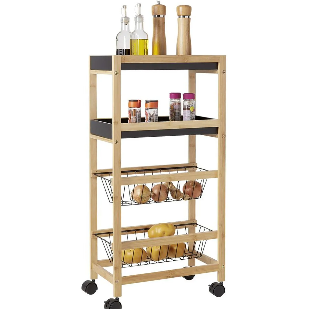 Idéal pour garder vos ustensiles à portée de main quand vous cuisinez ou vos accessoires de travail dans le bureau. Cette desserte se glisse dans les plus petits espaces et peut être déplacée très facilement.