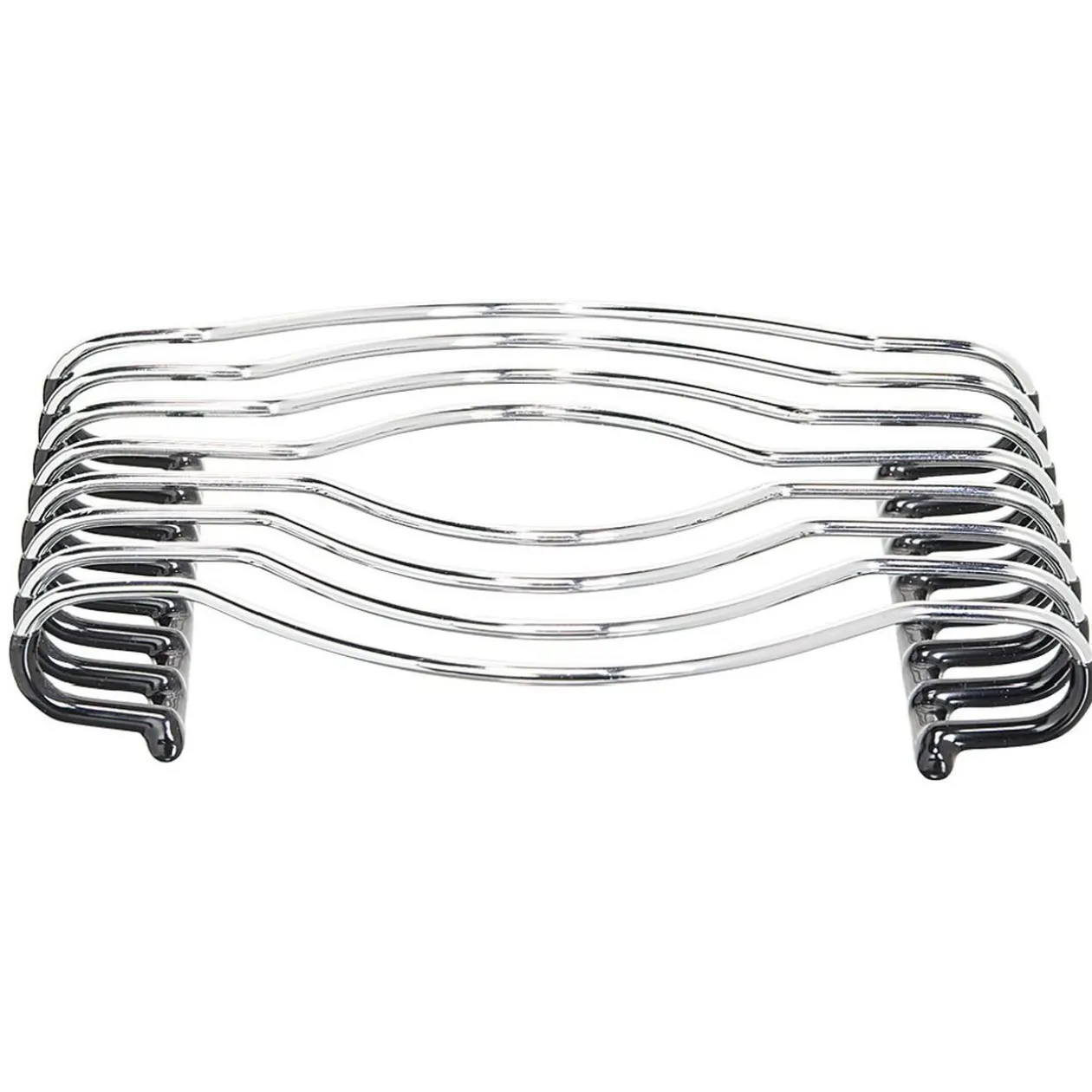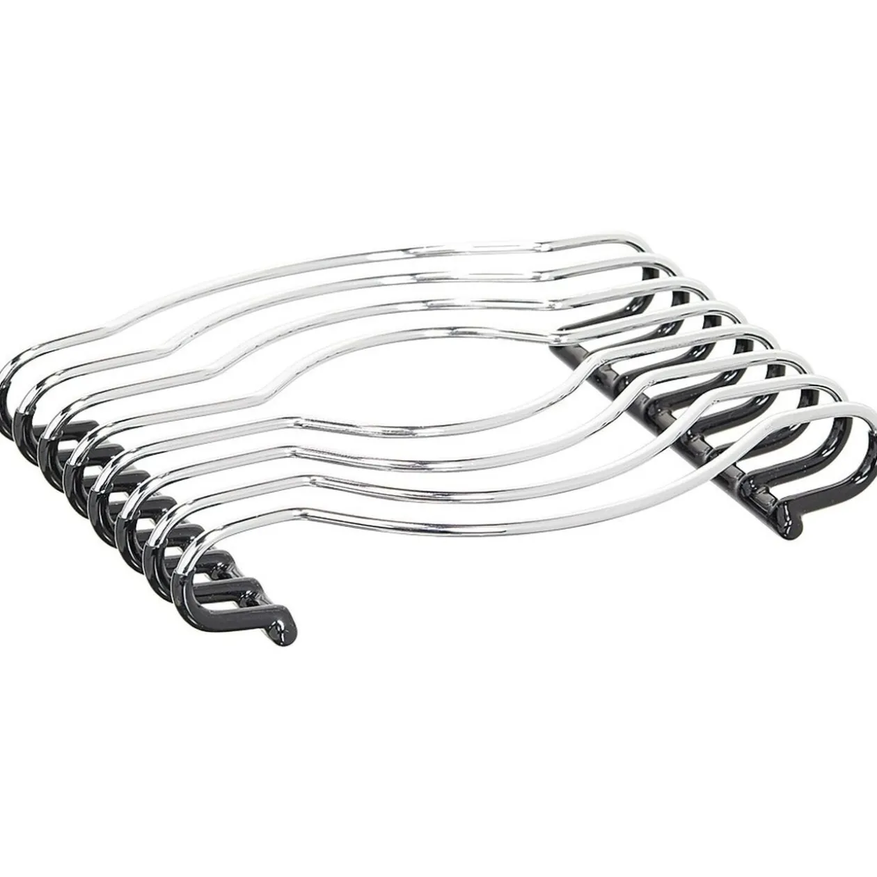 Dessous de plat en métal gris chromé avec dessous en silicone noir antidérapant.