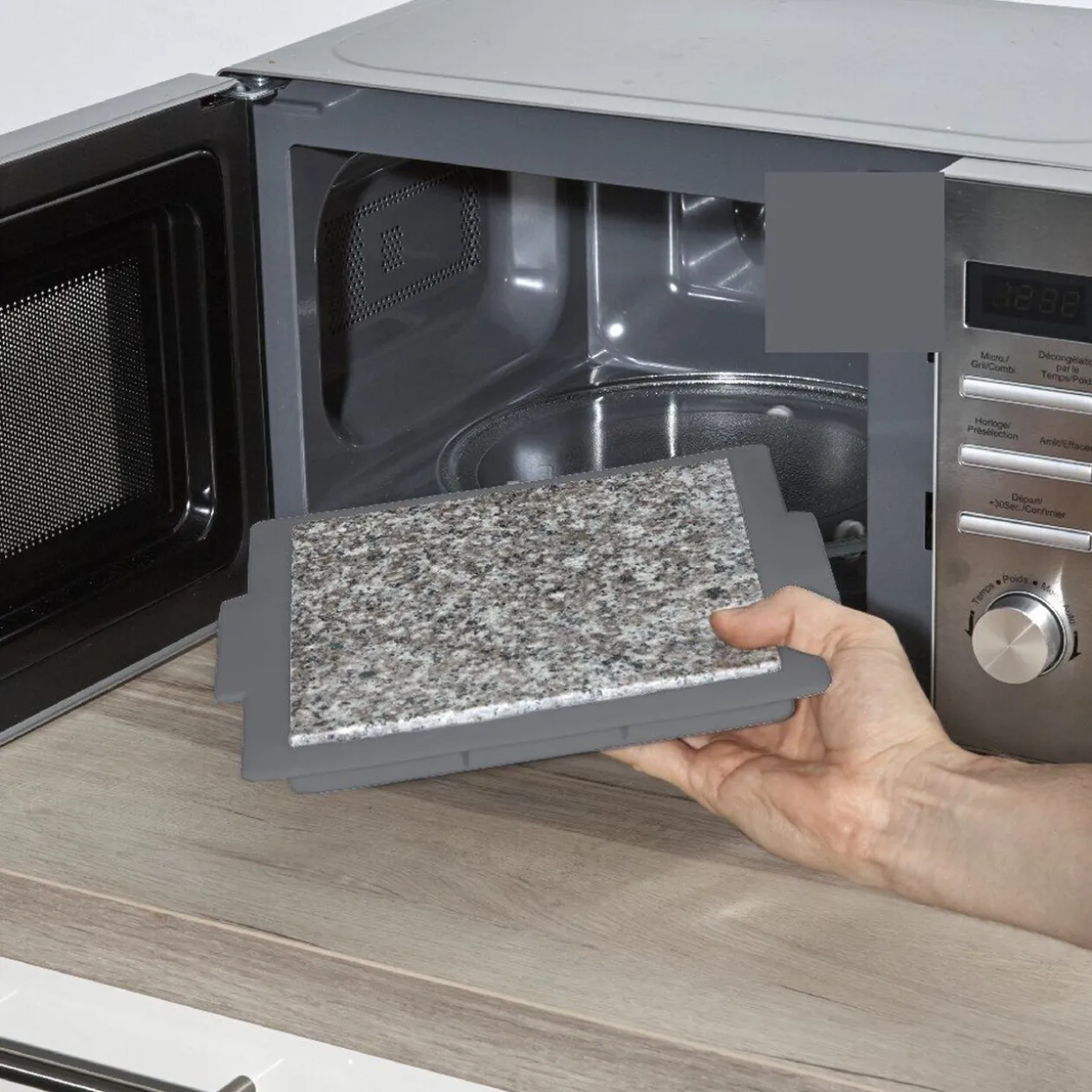 Pierre chauffée en 2 minutes au micro-ondes et refroidie en 2 heures au congélateur.