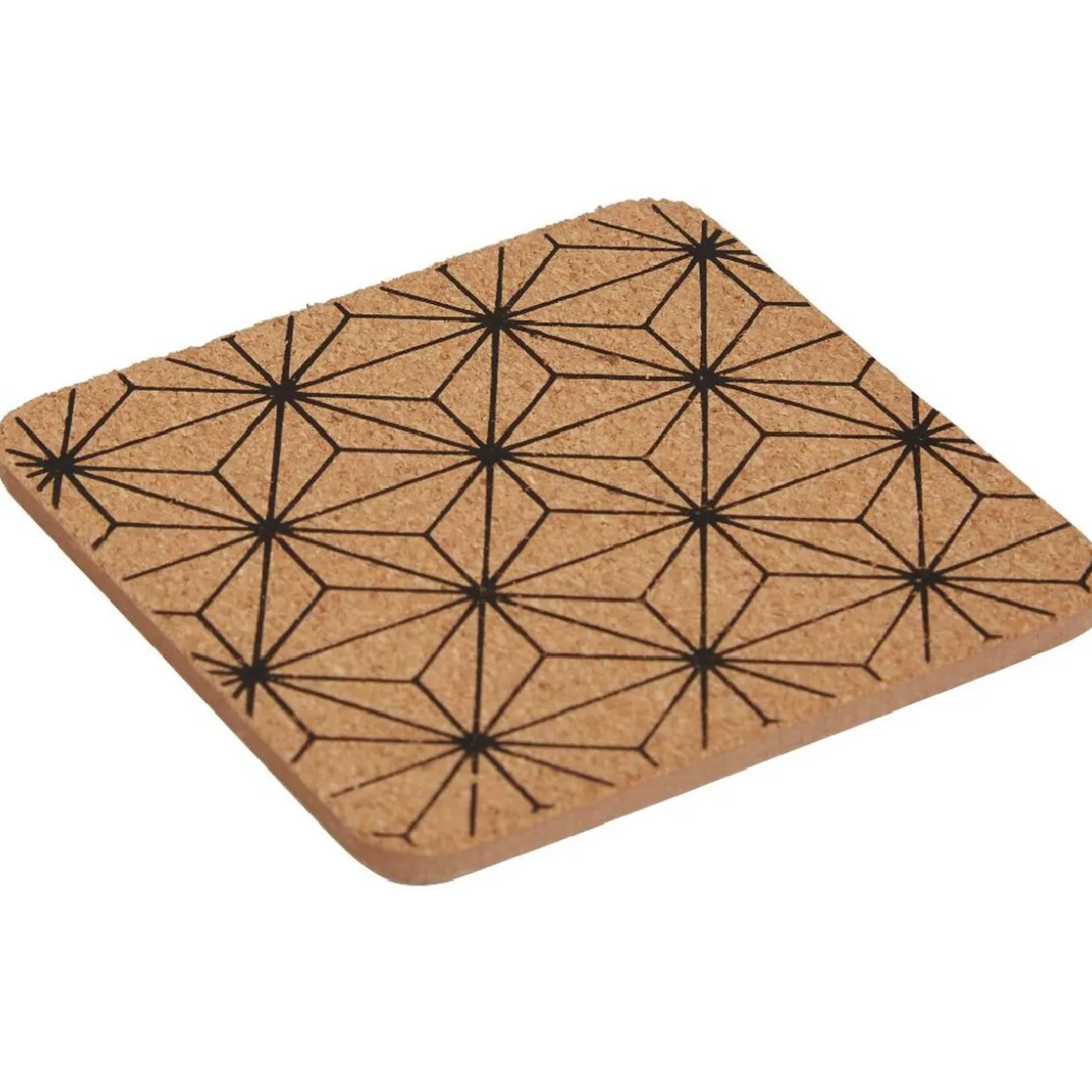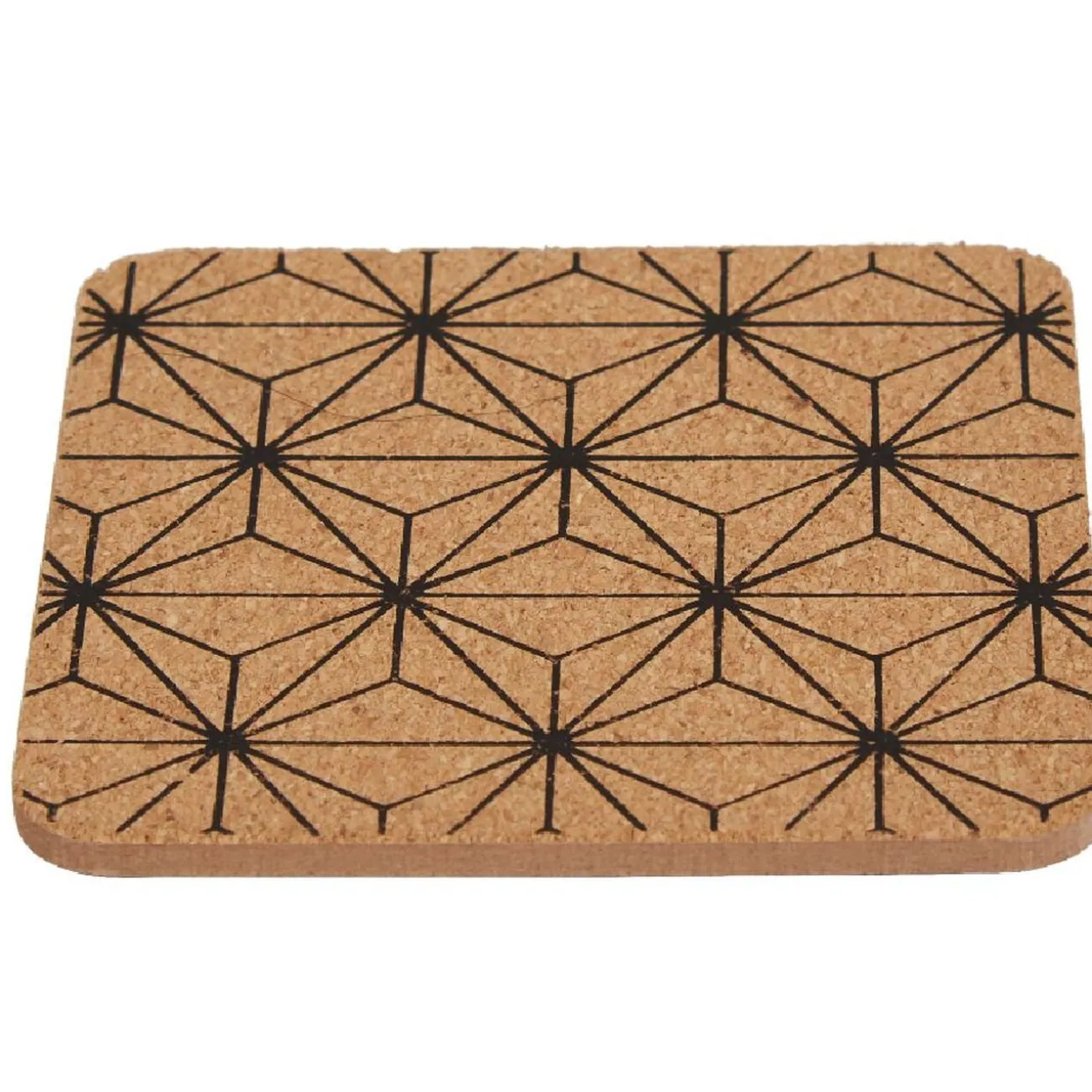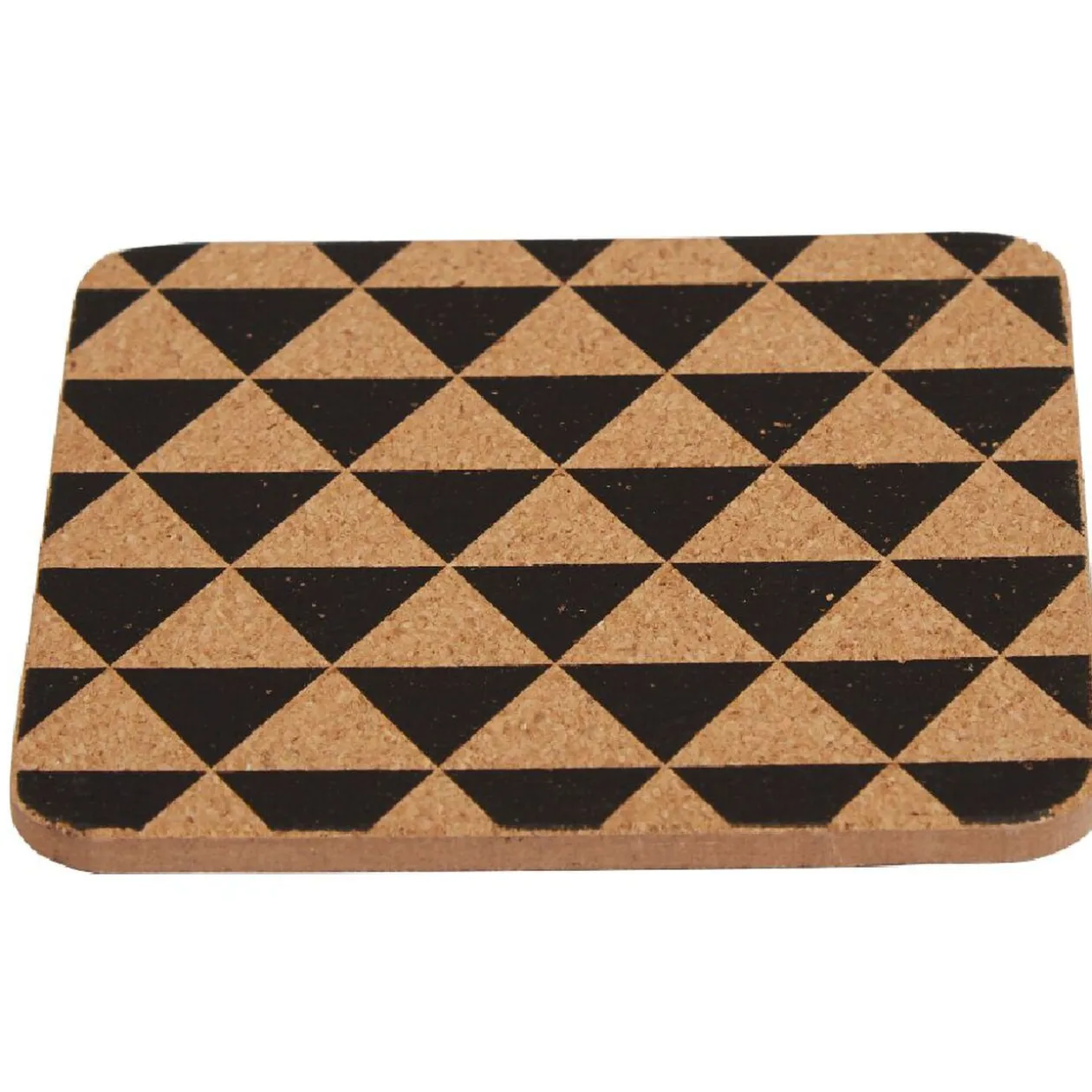 Lot de 4 dessous de verre en liège à motifs géométriques noirs, en plus de protéger votre table ils contribuent à apporter un vent de modernité à votre intérieur.
