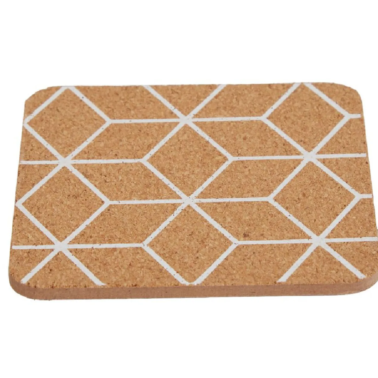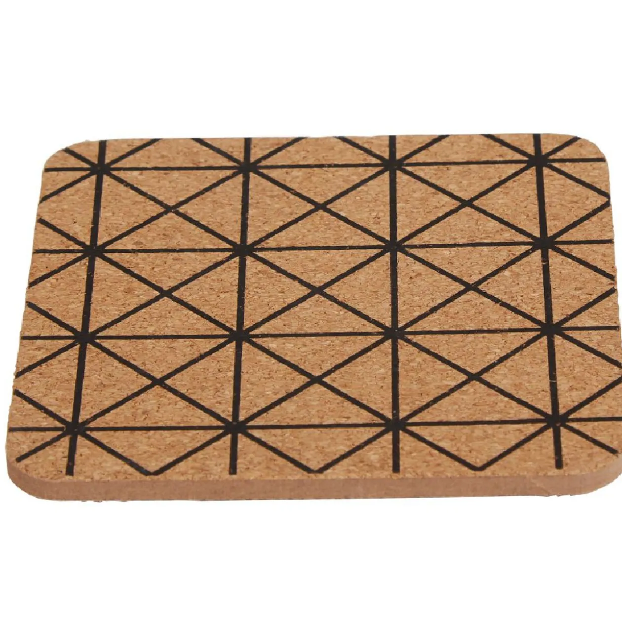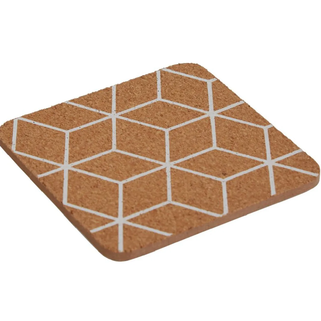 Lot de 4 dessous de verre en liège à motifs géométriques noirs, en plus de protéger votre table ils contribuent à apporter un vent de modernité à votre intérieur.