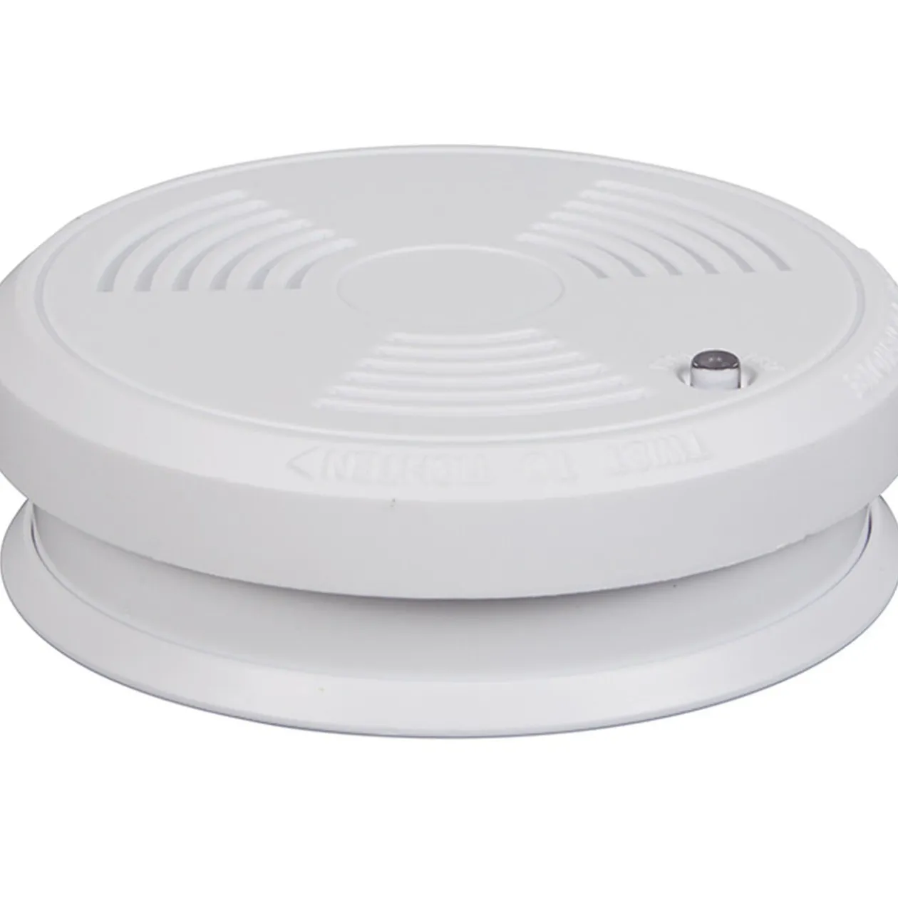Détecteur de fumée, ø 10 cm, plastique, respecte les normes CE. Détecte rapidement le départ d’incendies domestiques grâce à son capteur optique.