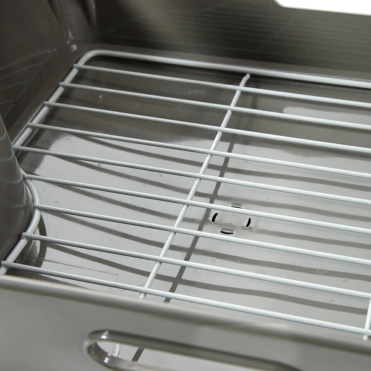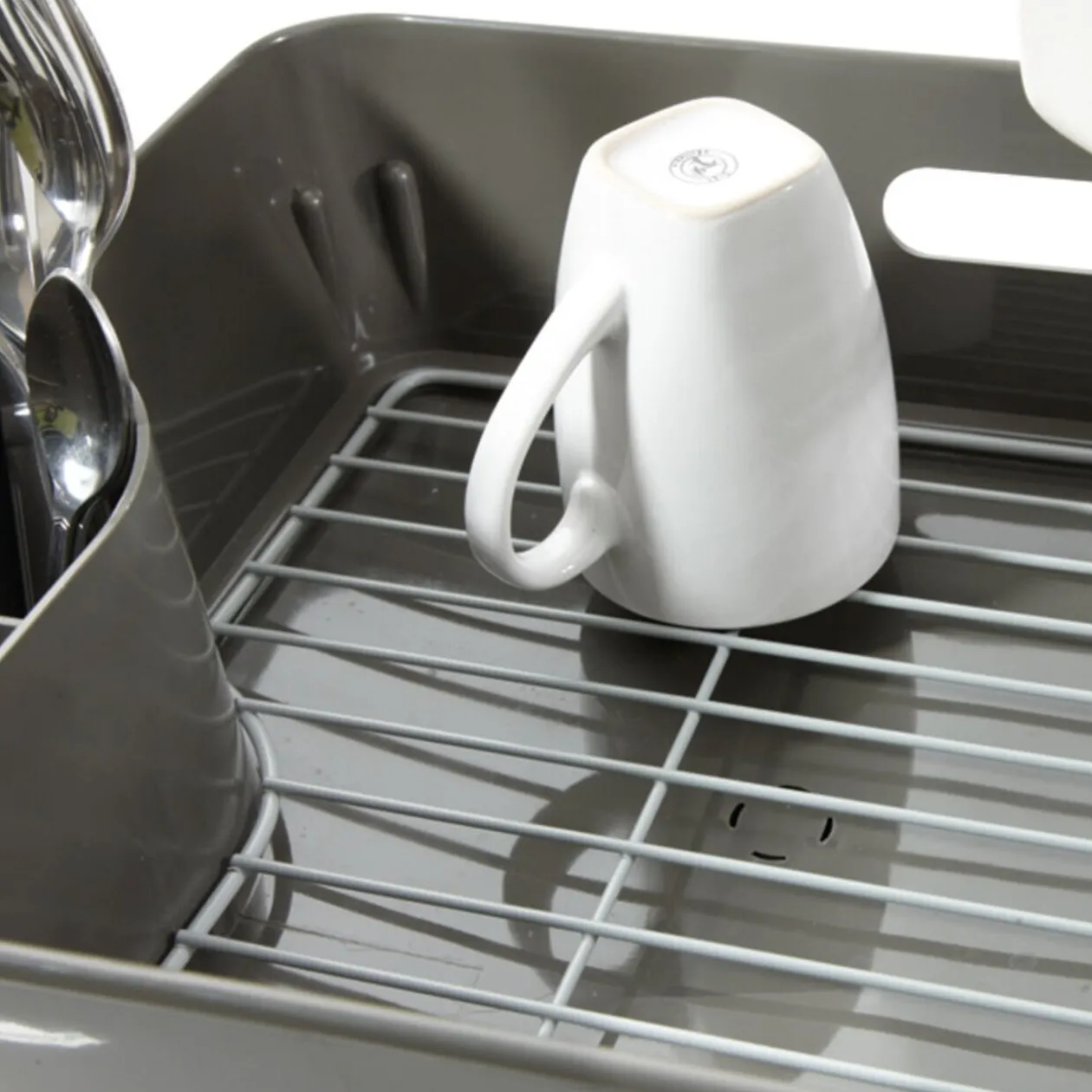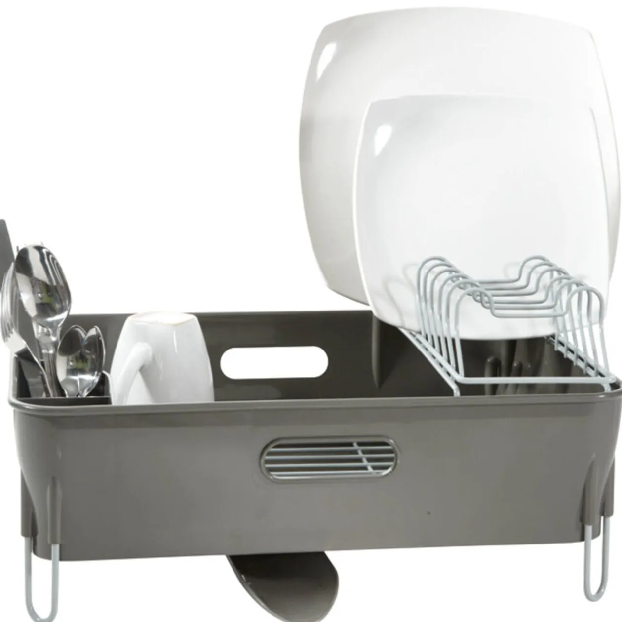 Egouttoir design, compact et malin, avec bac récupérateur d’eau. Dim. 42x31x23 cm, plastique.