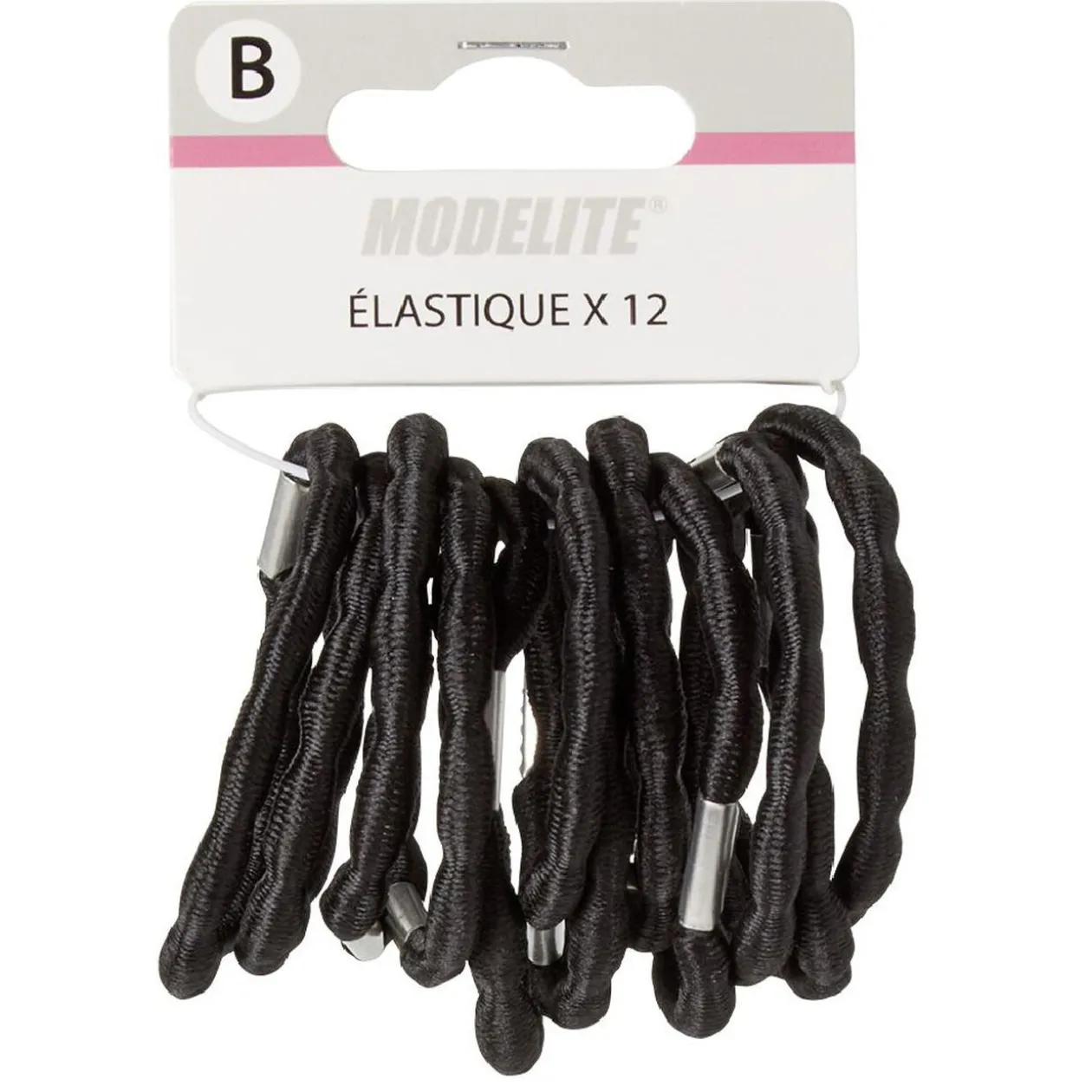 Lot de 12 élastiques en latex ondulé noir avec embout en métal.