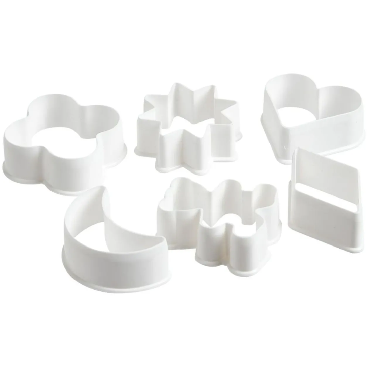 Ce lot de 6 emporte-pièces en plastique blanc vous permettra de réaliser de délicieux petits biscuits aux formes variées.