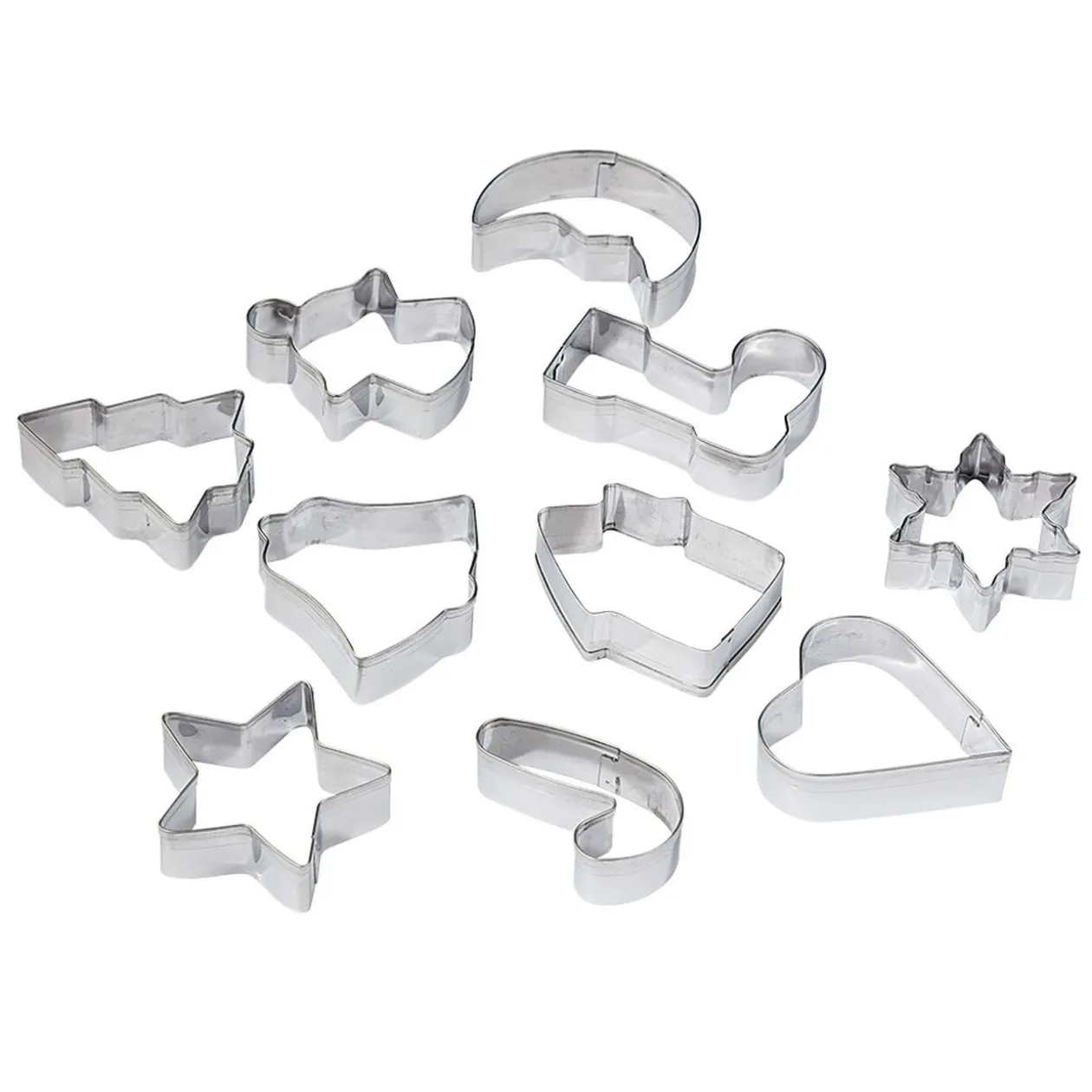 Lot de 10 emporte-pièces en acier inoxydable sur le thème de Noël.