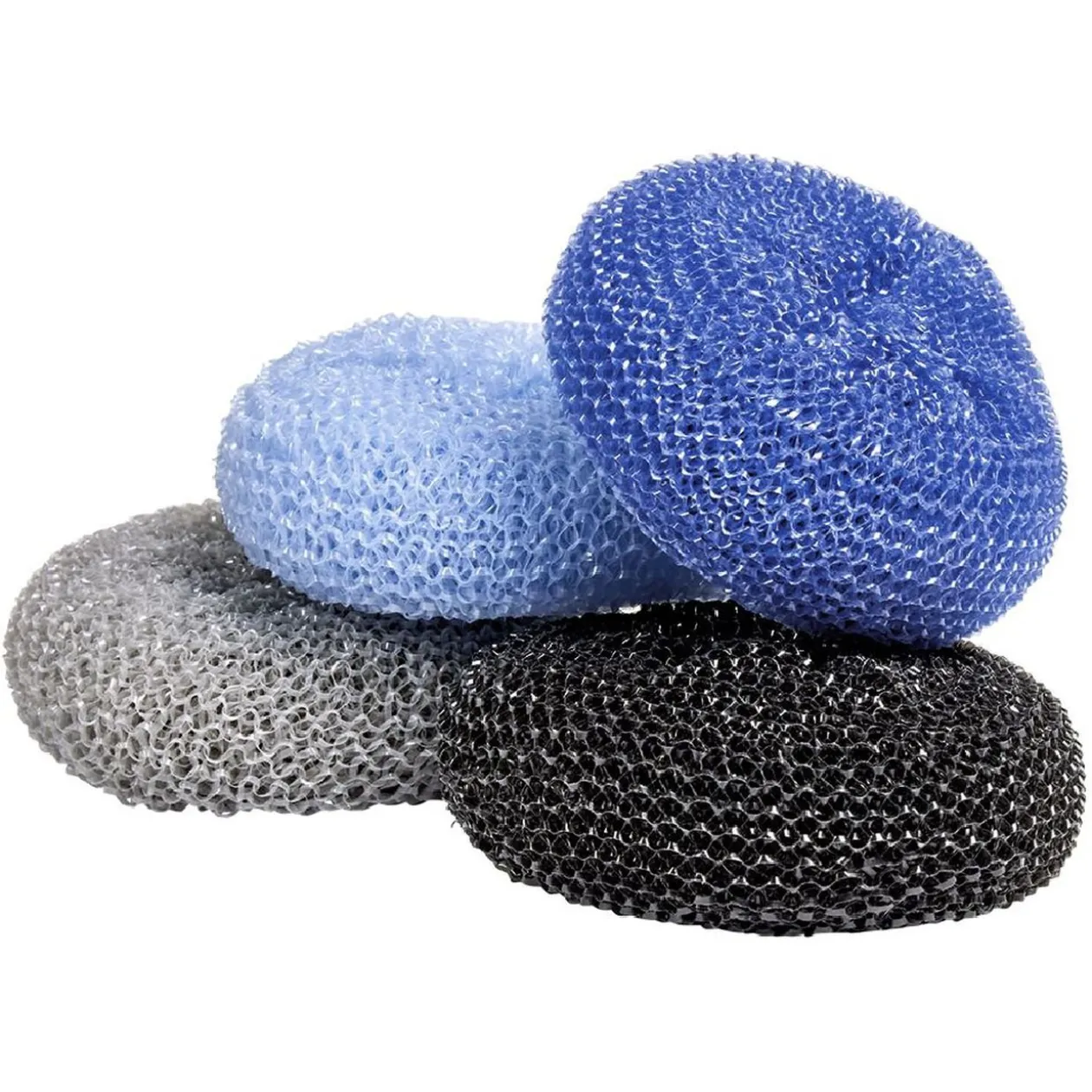 Lot de 4 tampons à récurer, idéal pour nettoyer l’inox, la porcelaine ou l’émail sans rayer.