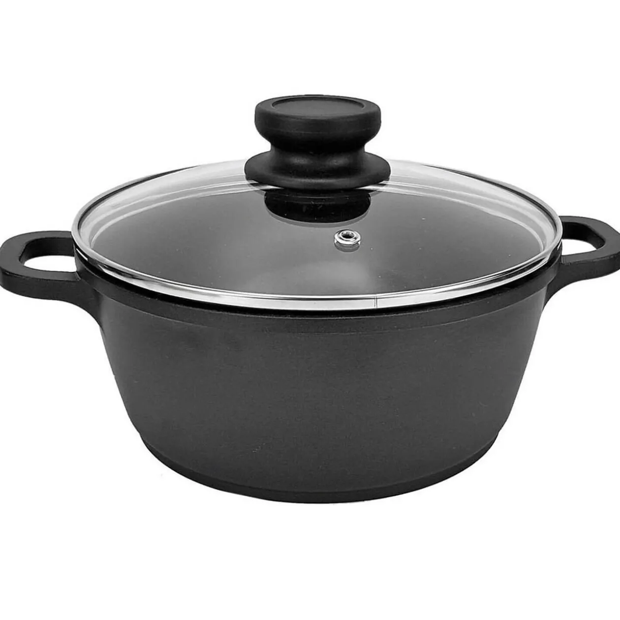 Préparez de délicieux plats mijotés, rôtis ou encore en ragoût tout en gardant des aliments tendres avec ce faitout noir en fonte d’aluminium et son couvercle en verre.