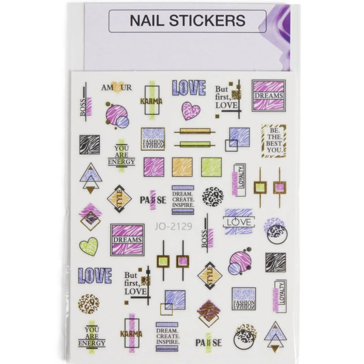 Personnalisez vos ongles avec cette feuille de stickers autocollants.
