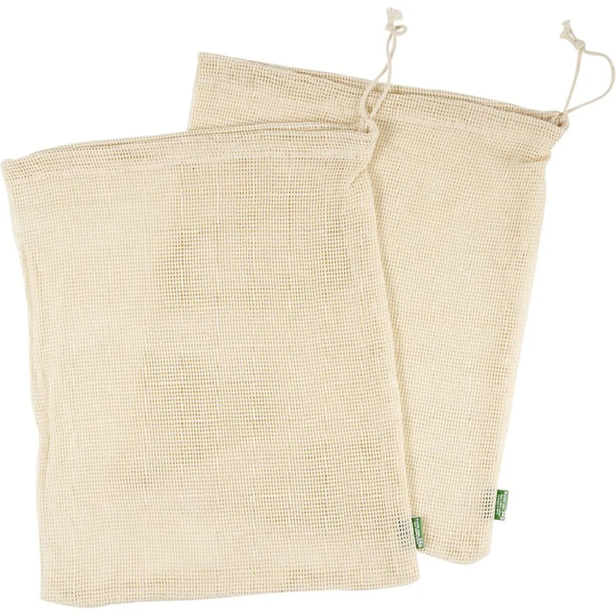 Lot de 2 filets en coton réutilisables et lavables. Idéal pour le stockage et le transport des fruits et légumes au retour du marché !