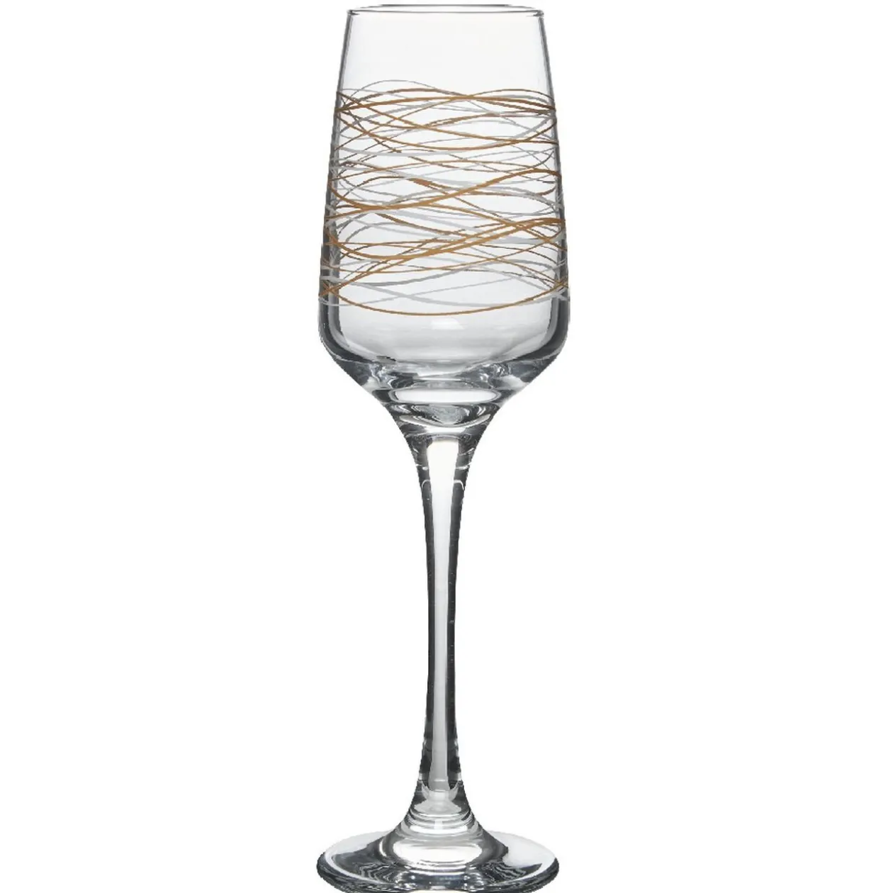 3 flûtes à champagne d’une contenance 23 cl motif spirale couleur ocre et blanc.