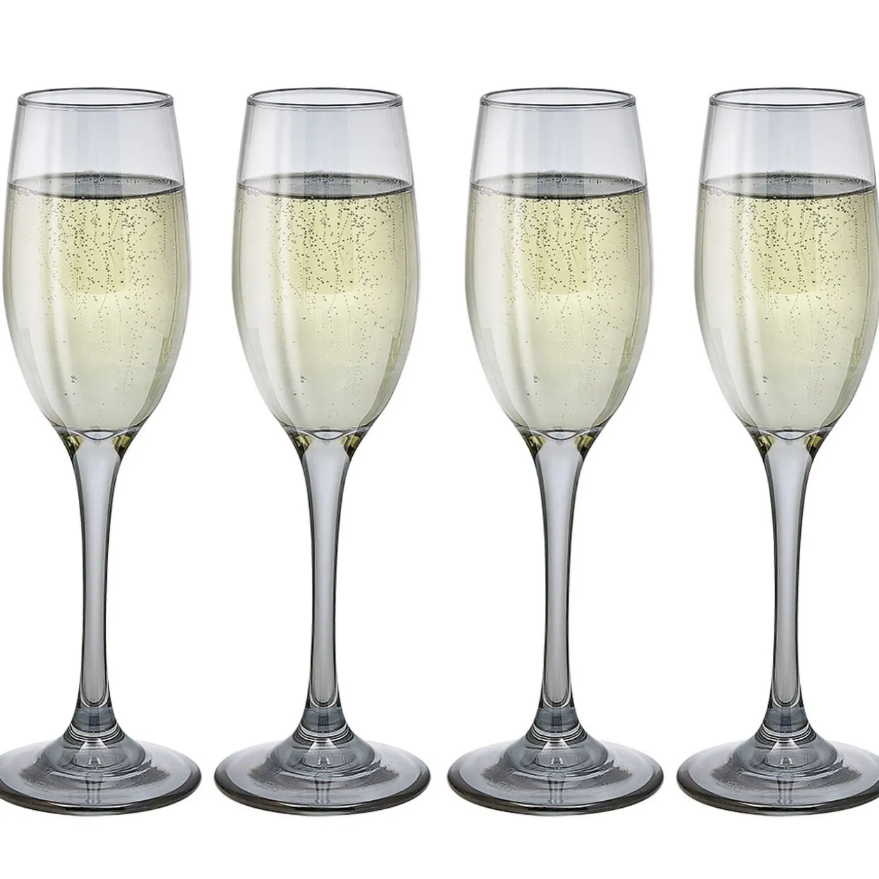 Ce lot de 4 flûtes en verre argenté sera du plus bel effet sur votre table de fête.