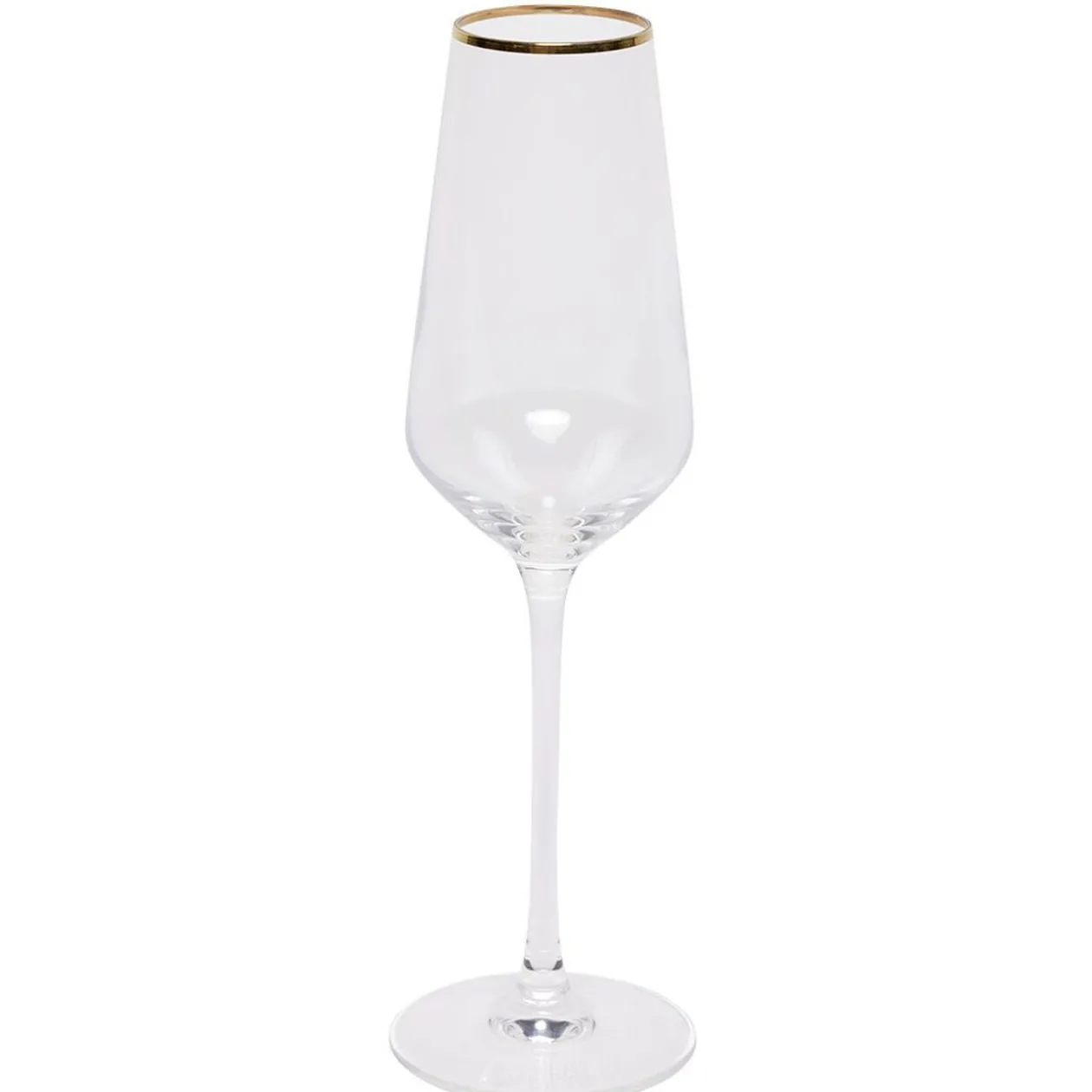Lot de 4 flûtes à champagne en verre cristallin avec liseré doré sur le rebord pour une dégustation festive lors de grandes occasions !