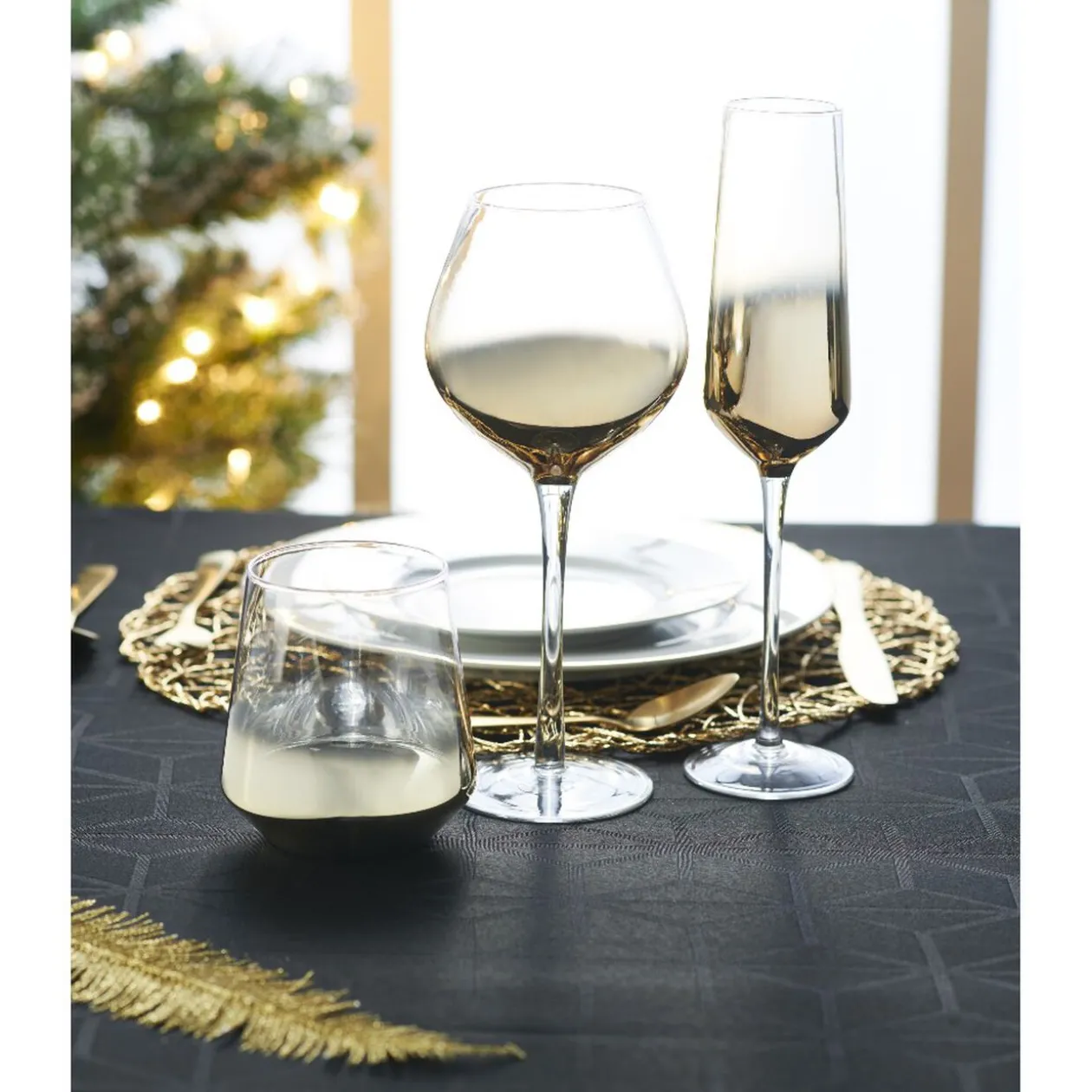 Flûte de table transparente et dorée