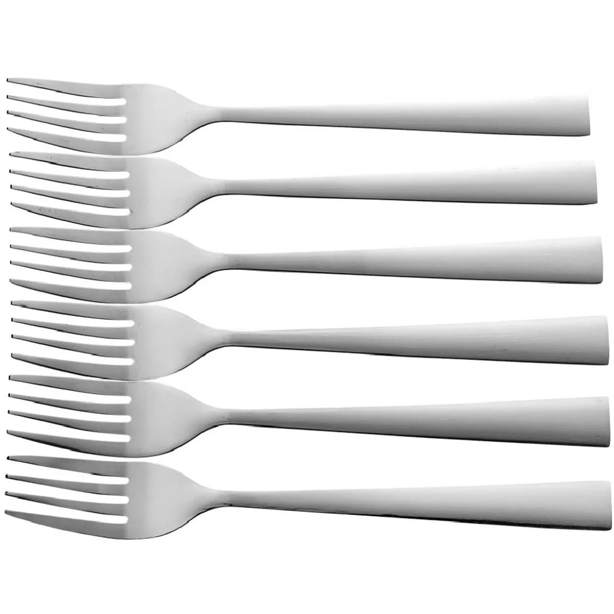 La finition inox de ces fourchettes à dessert les rend tout à la fois résistantes et très modernes.
