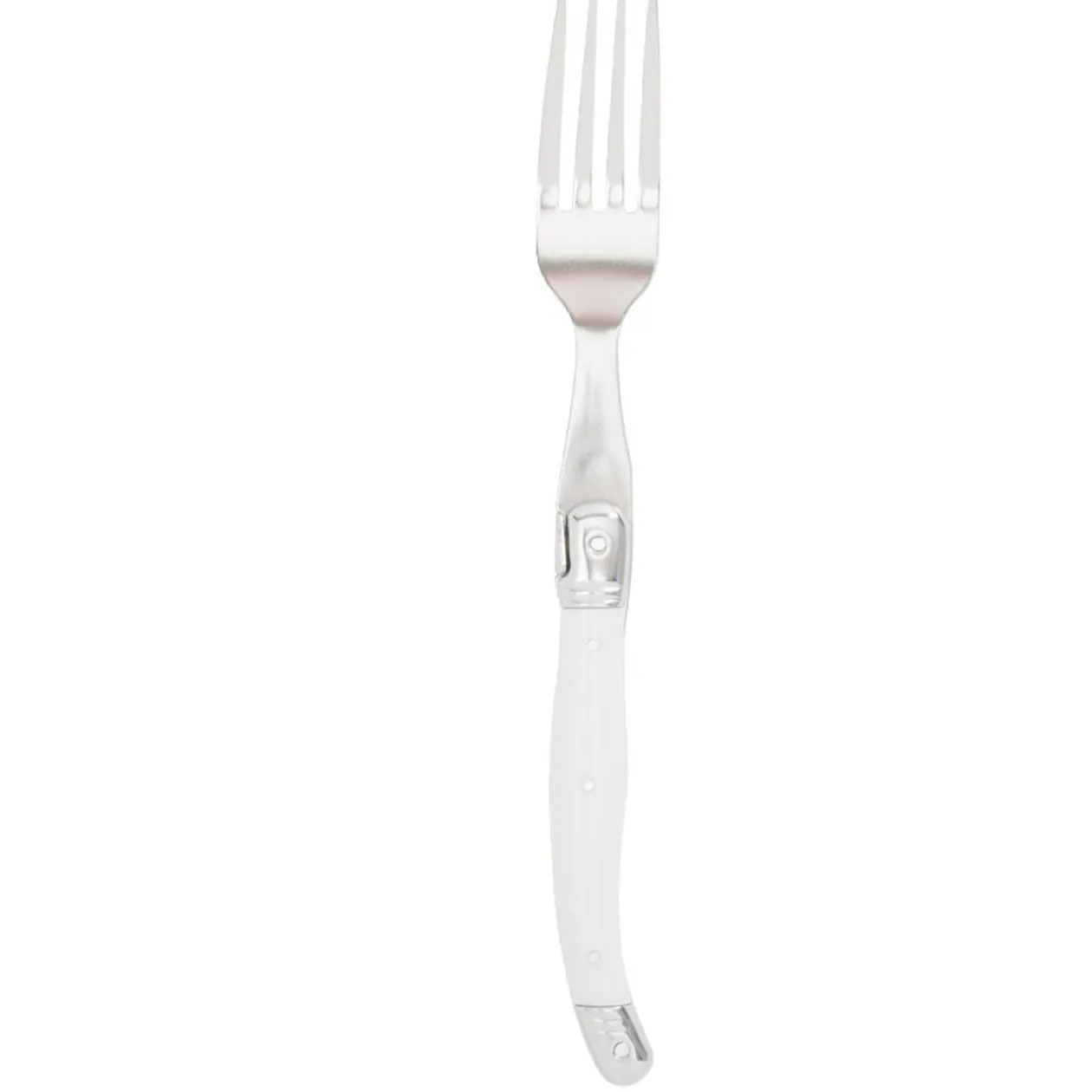 Set de 6 fourchettes en inox avec manche multicolore assorti.