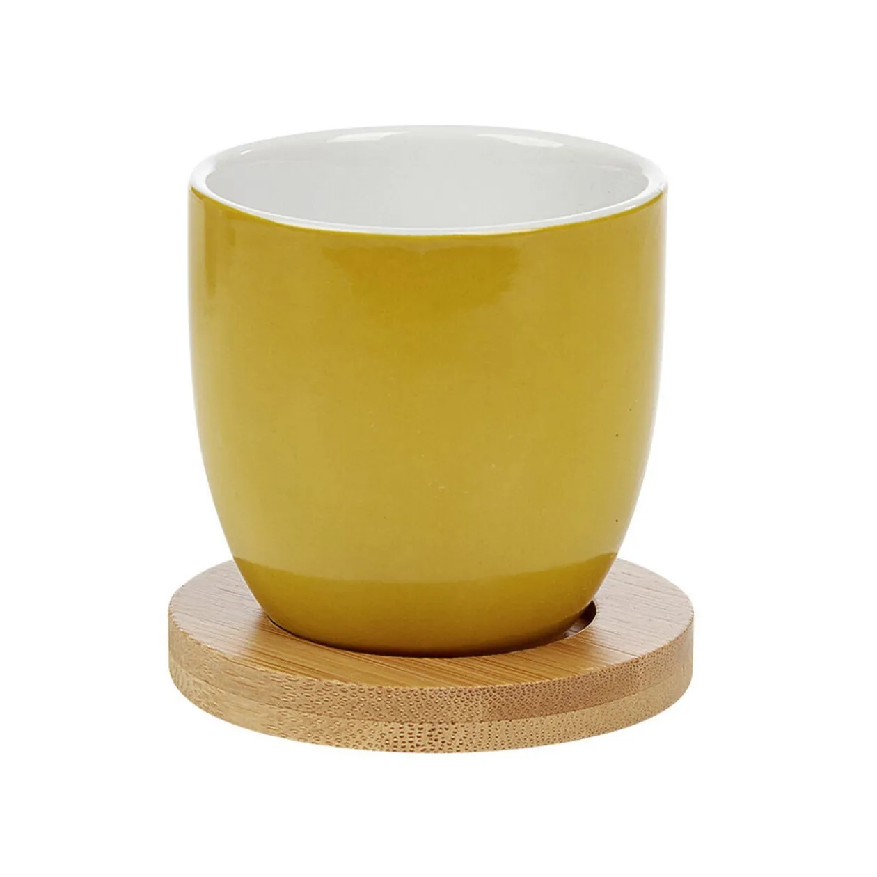 Ensemble de 4 gobelets à expresso en porcelaine multicolore et sous-tasses en bambou. Ce set au design multicolore apportera une touche élégante et moderne à vos pauses cafés!