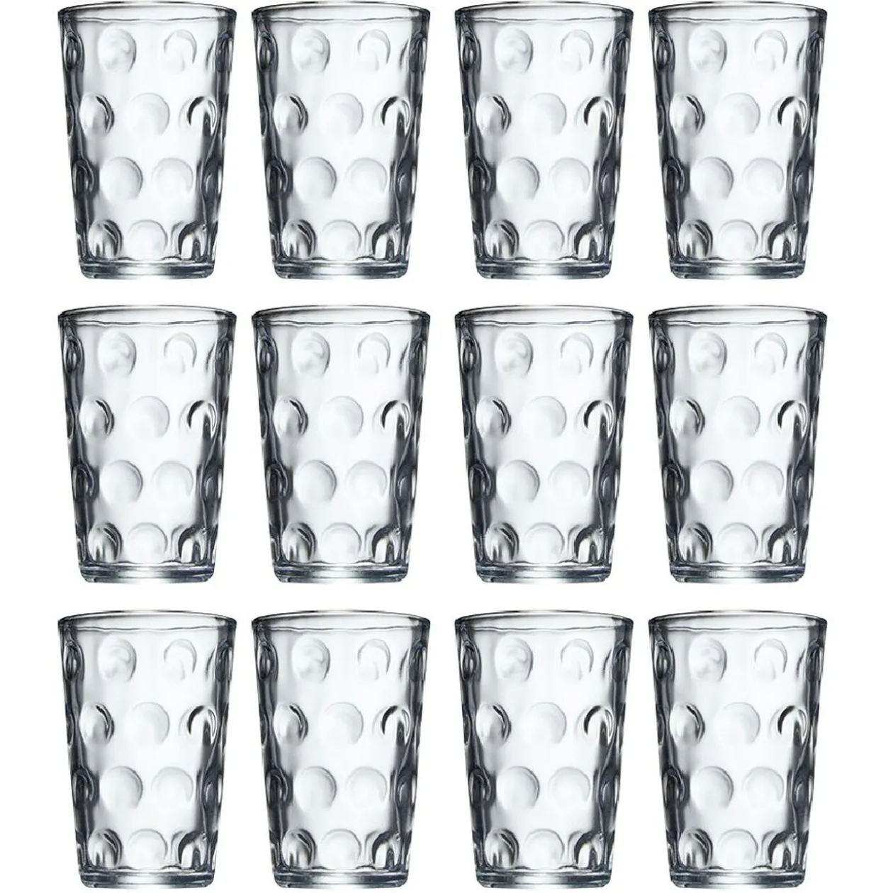 Lot de 12 gobelets en verre transparent d’une contenance de 20 cl.