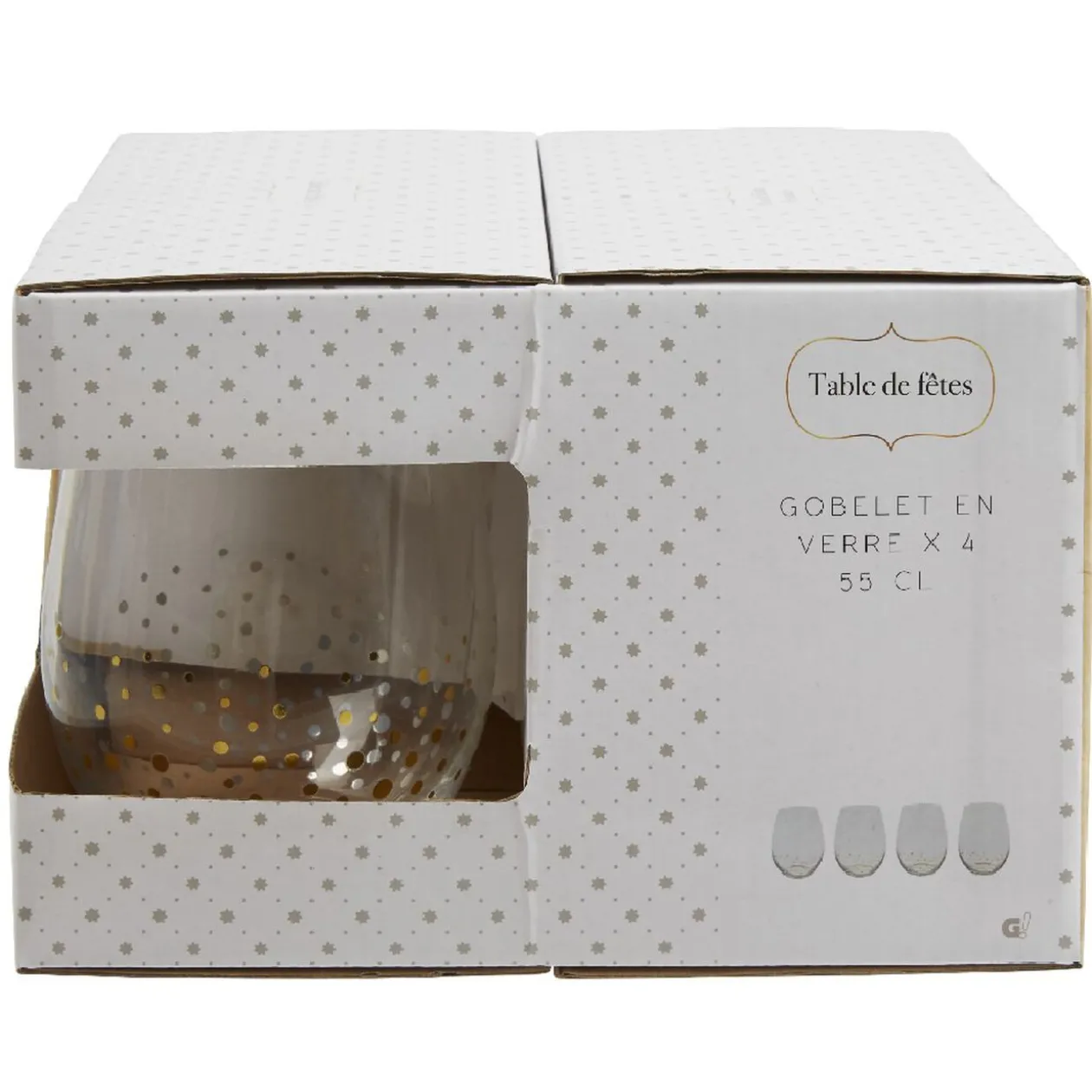 Enjôlez votre table en déposant ces 4 gobelets ovales aux pois dorés. Parfaits pour Noël, un mariage, le réveillon du jour de l’an, un anniversaire, ses motifs festifs rendront le repas plus joyeux. Pour un apéritif tout en finesse, ce gobelet mettra à coup sûr vos boissons en valeur. Pensez à nos flûtes à champagne assortis pour une décoration de table au poil pour les fêtes.