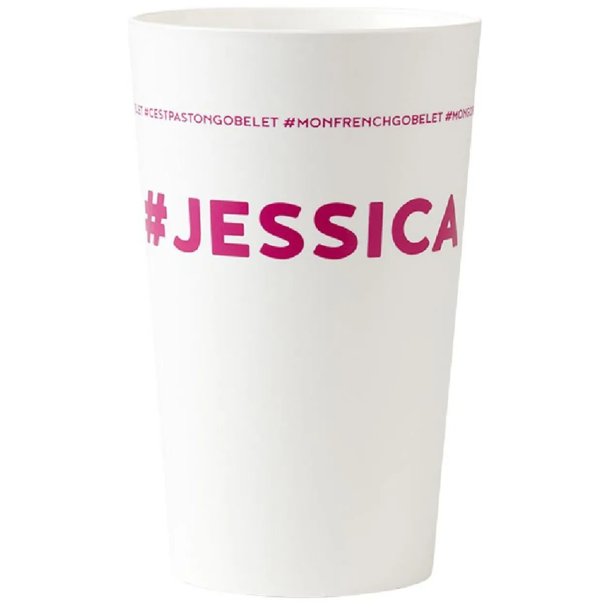 Gobelet #JESSICA en plastique blanc et rose. Existe en différents prénoms.