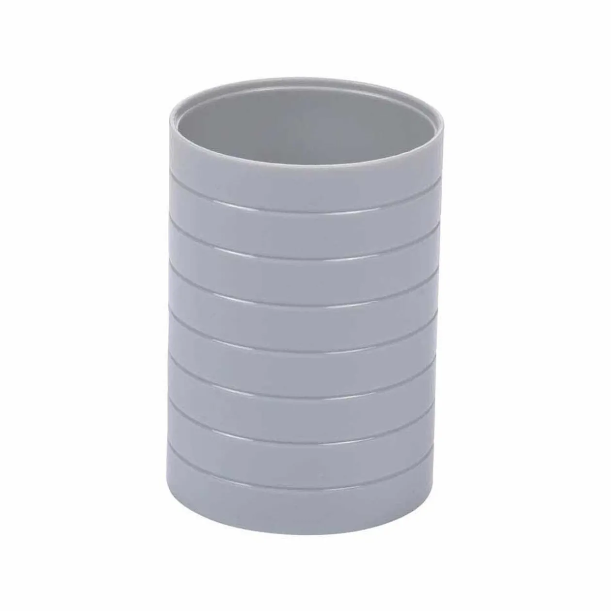 Gobelet porte-brosse à dents en plastique de couleur grise design strie.