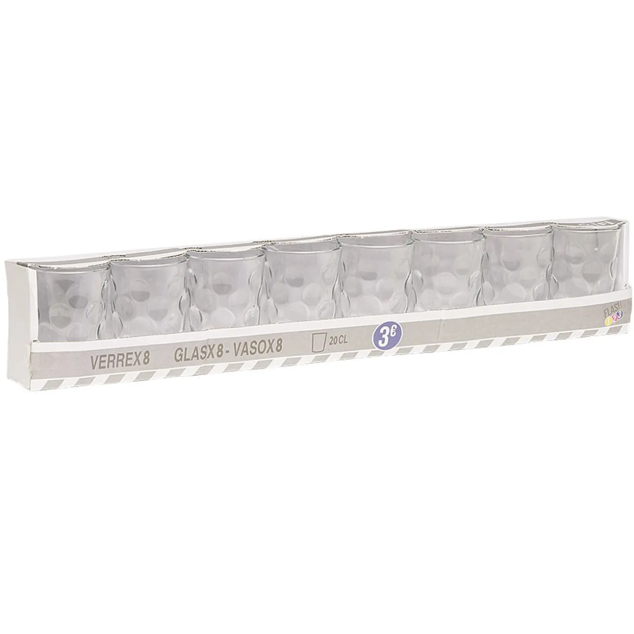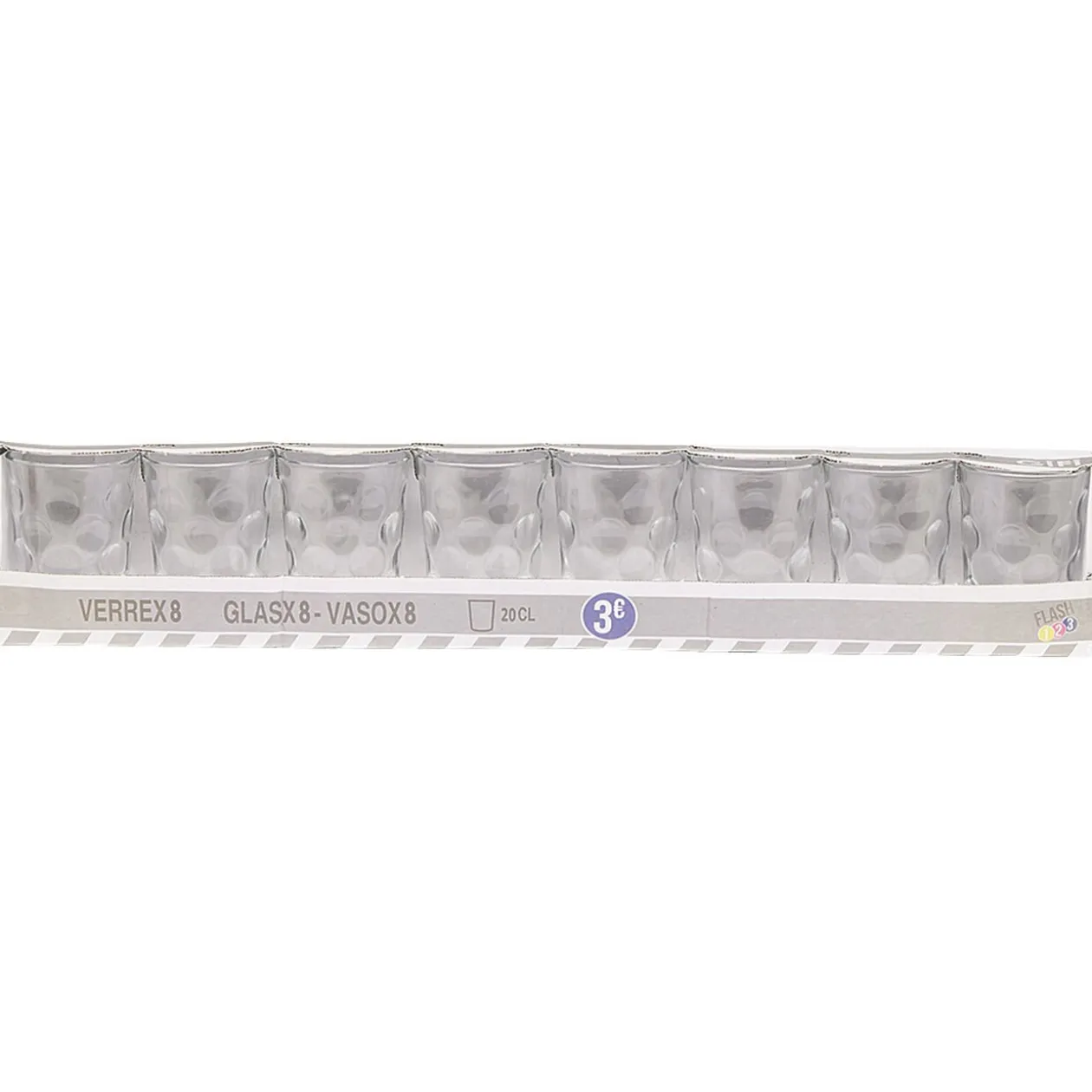 Lot de 8 gobelets à motif embossé en verre transparent.