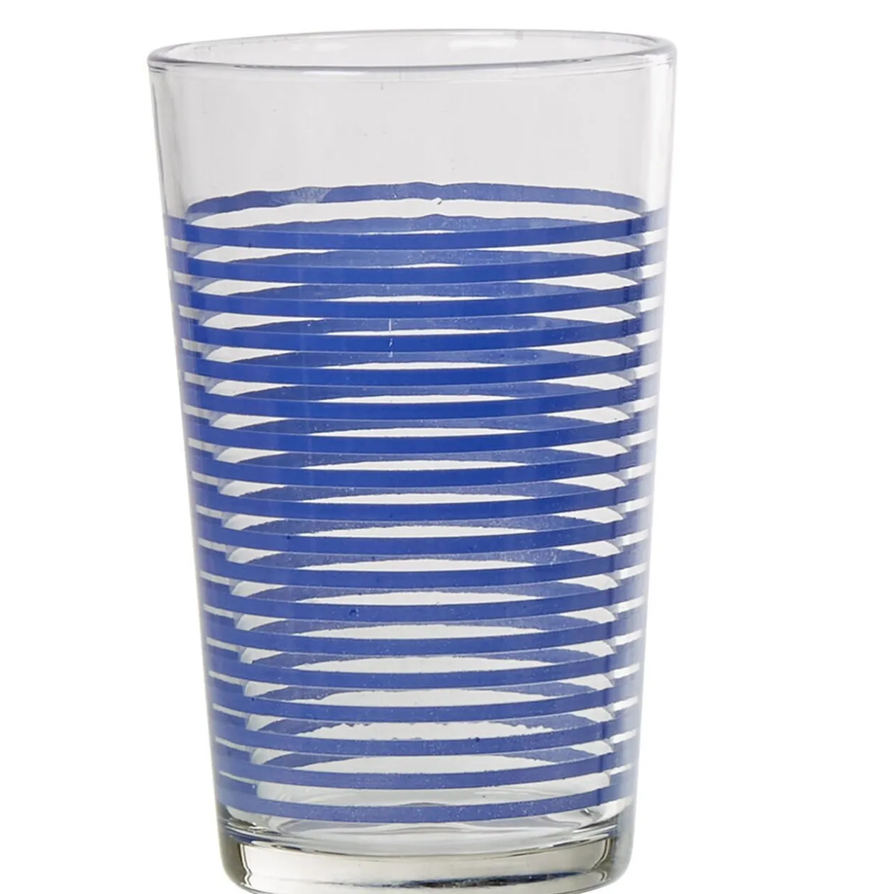 Lot de 6 verres avec rayures de couleurs assorties: 2x bleu, 2x jaune et 2x vert.