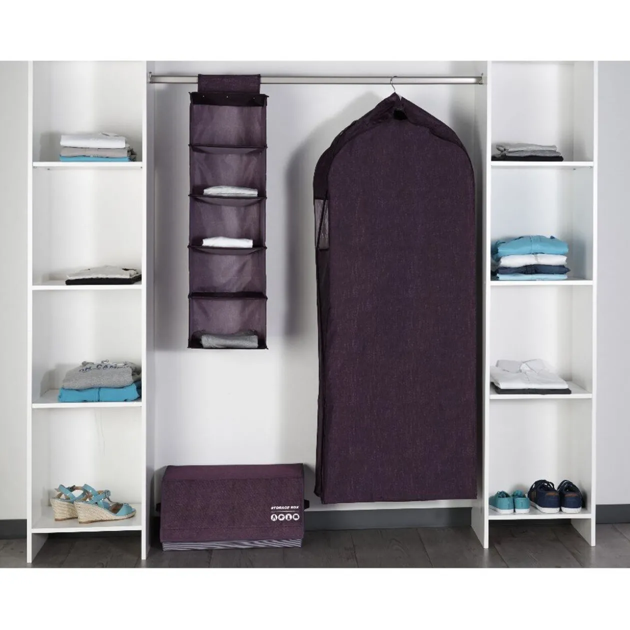 Housse de rangement vêtements violette, dim. 30x57x137 cm, polyester.