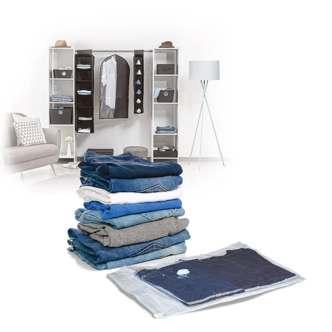 Optimisez votre rangement jusqu’à 70% de gain de place avec ce lot de 5 housses vide air réutilisables.