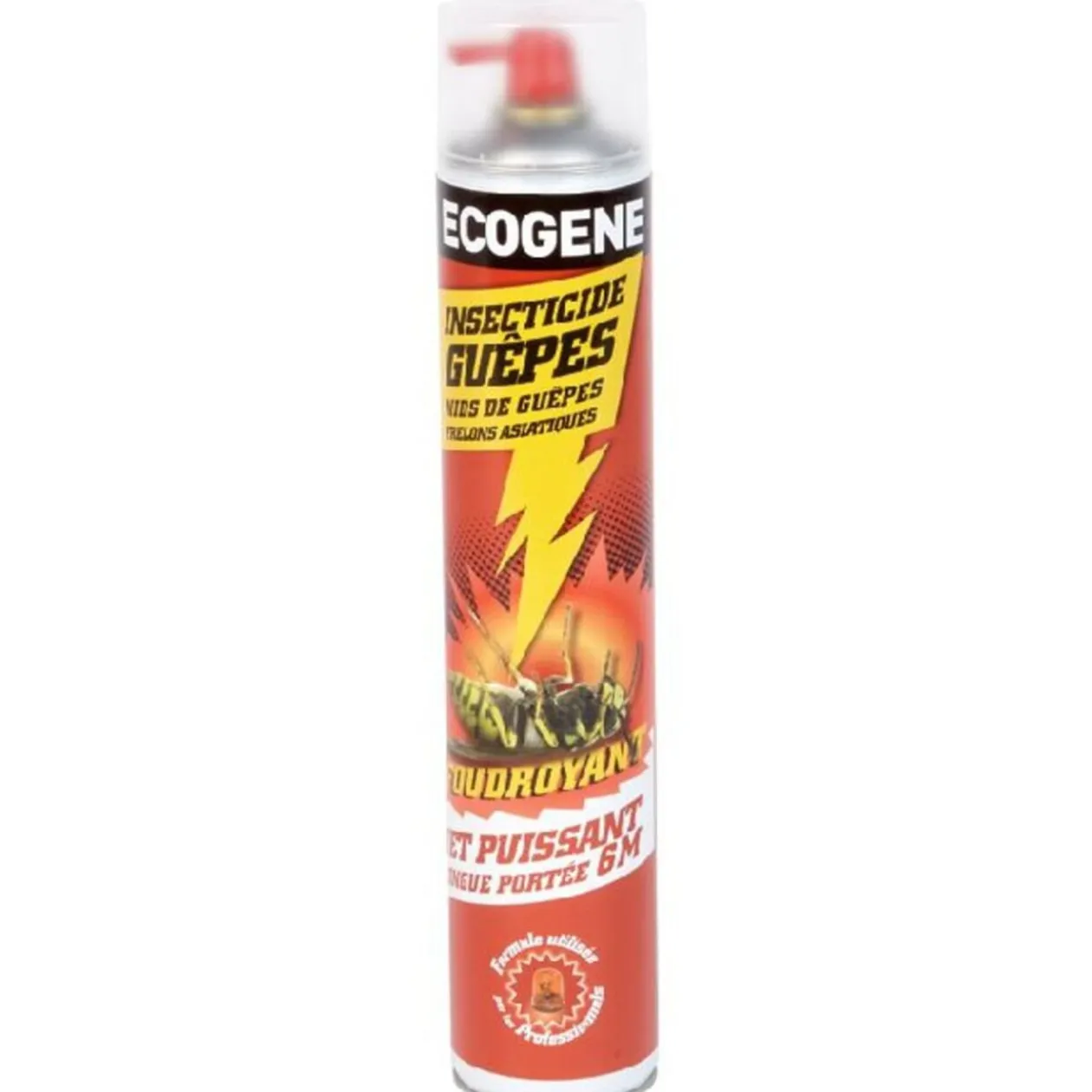 Insecticide foudroyant guêpes, frelons, cont. 750 ml, portée de 6 m, spécifiquement conçu pour les guêpes, nids de guêpes et frelons asiatiques.Erratum : erreur de photo, merci de ne pas tenir compte de cette photo, le motif est différent.