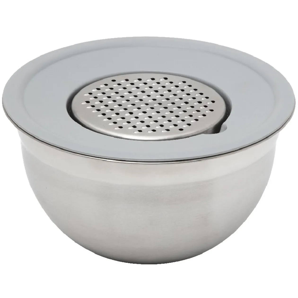 Bol à mixeur en inox comprenant 3 accessoires pour râper (fin ou épais), trancher ou émincer vos aliments en toute simplicité.