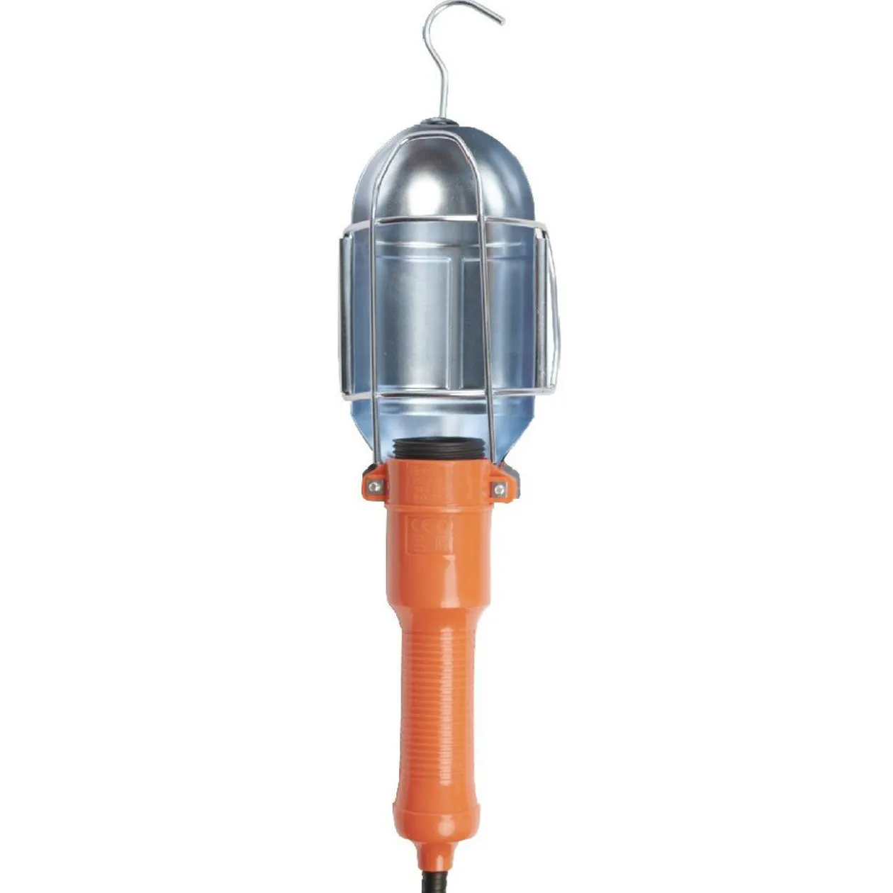 Lampe baladeuse de chantier avec câble de 5 m de longueur. Dotée d’une protection métallique aveccrochet rotatif pour un éclairage optimal durant tous vos travaux de bâtiments ou les ateliers.