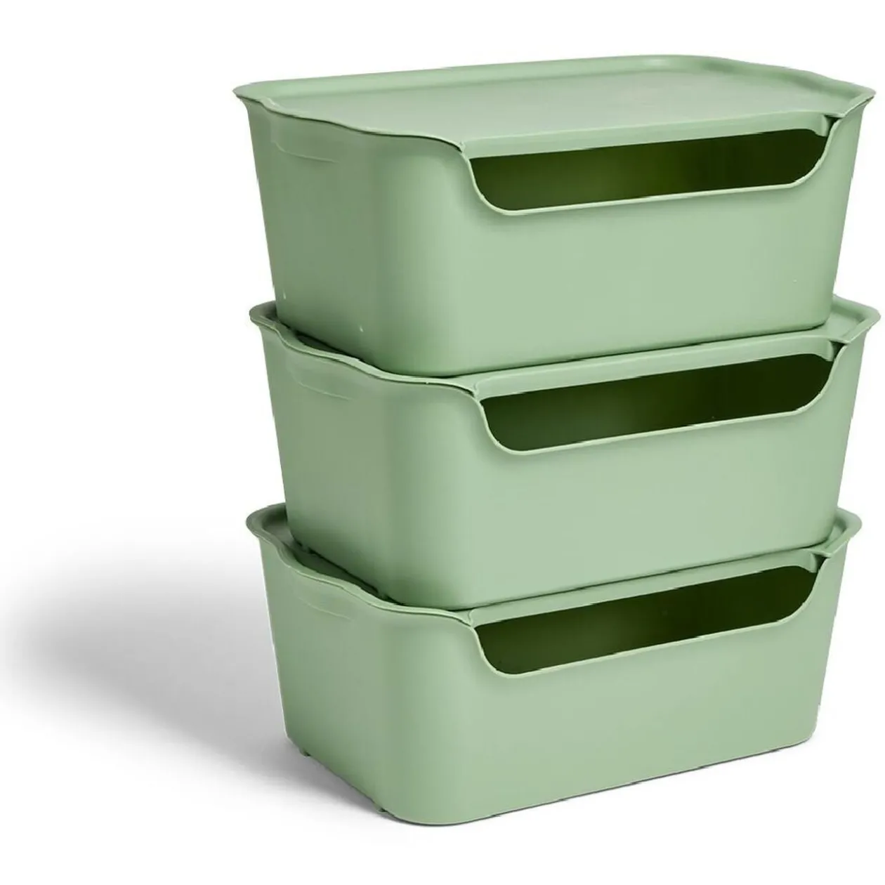 Lot de 3 boîtes de rangement en plastique de 15 litres chacune, dotées de couvercles pratiques.