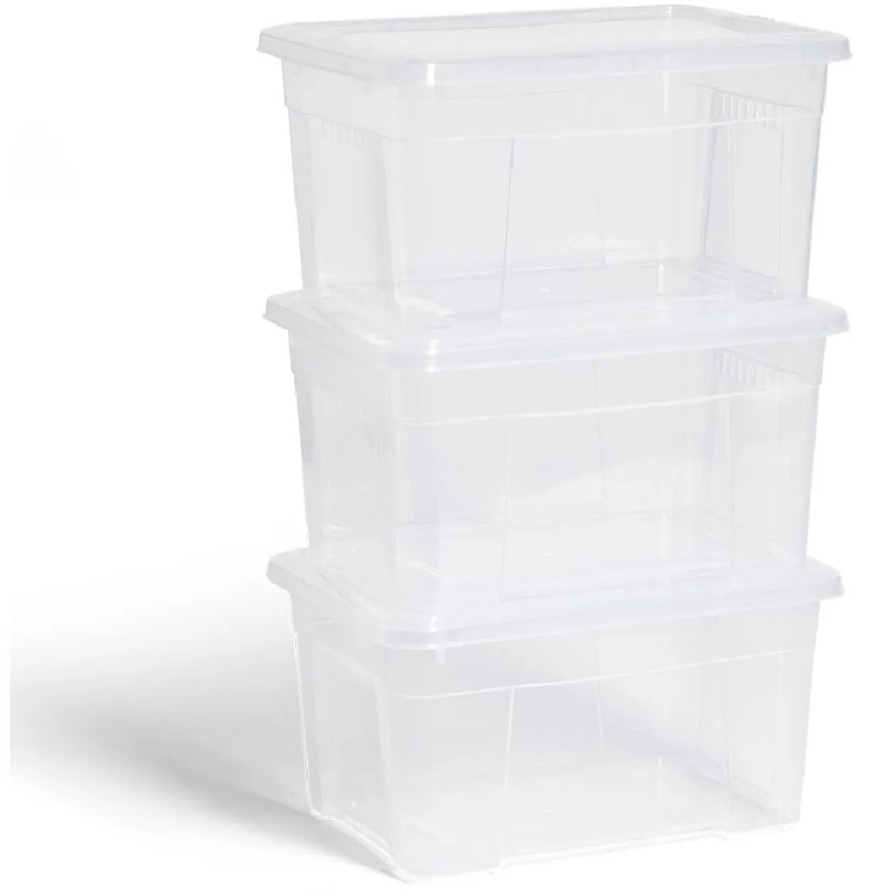 Un ensemble pratique de 3 boîtes en plastique transparent d’une capacité de 4,5 litres chacune, idéal pour le stockage et l’organisation efficace de divers articles.