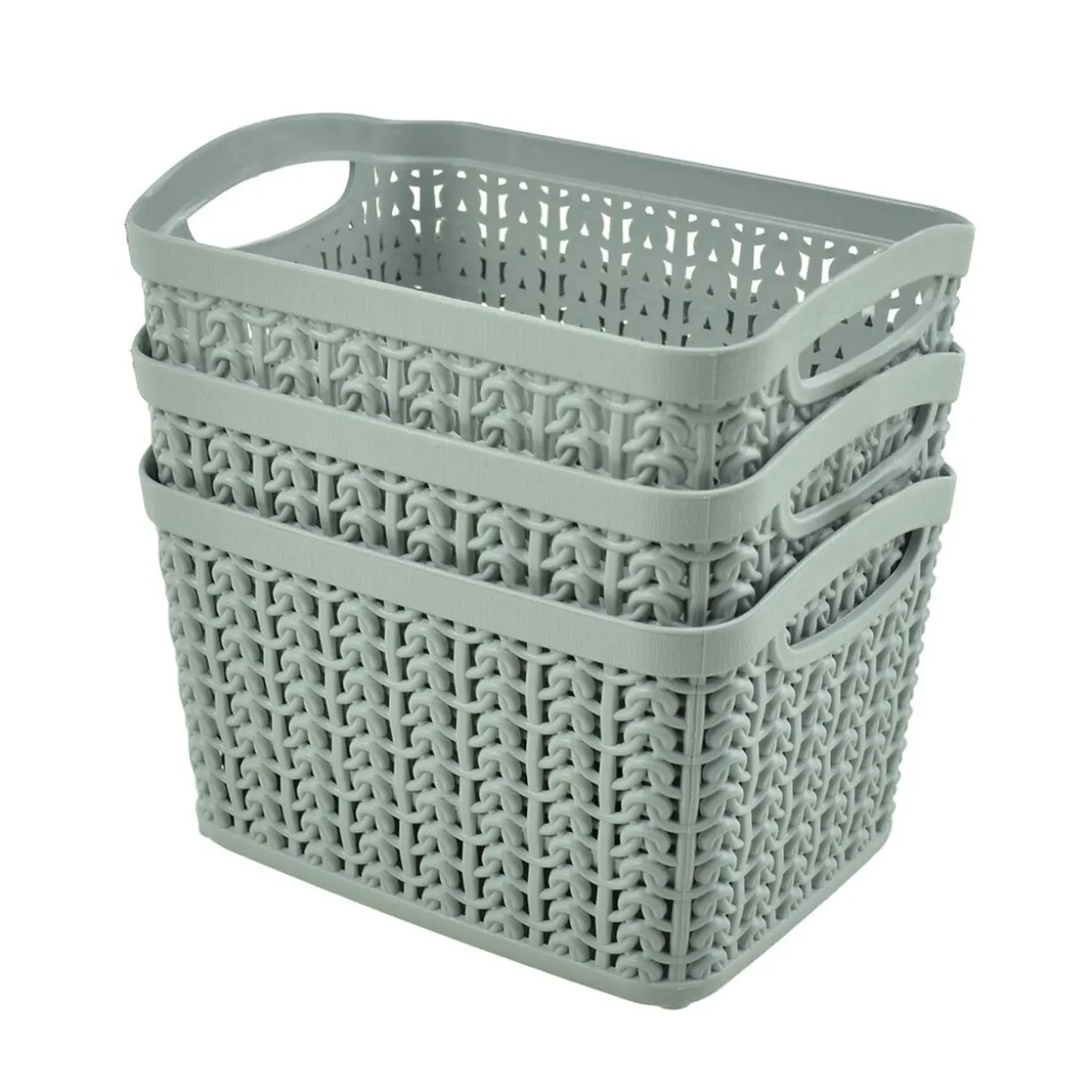 Lot pratique de 3 panières de rangement en polypropylène, parfaites pour organiser petits objets, accessoires de bureau ou produits de beauté.