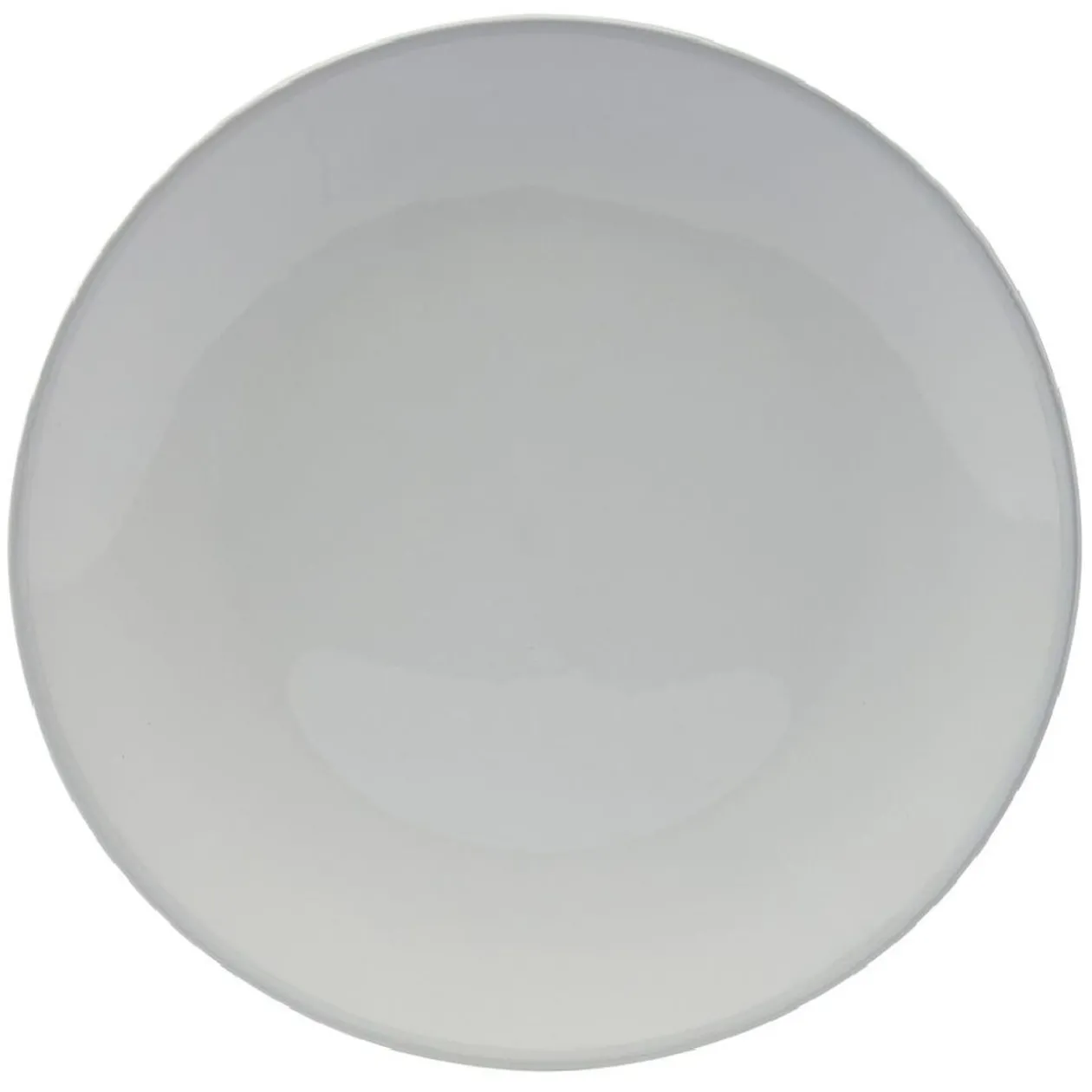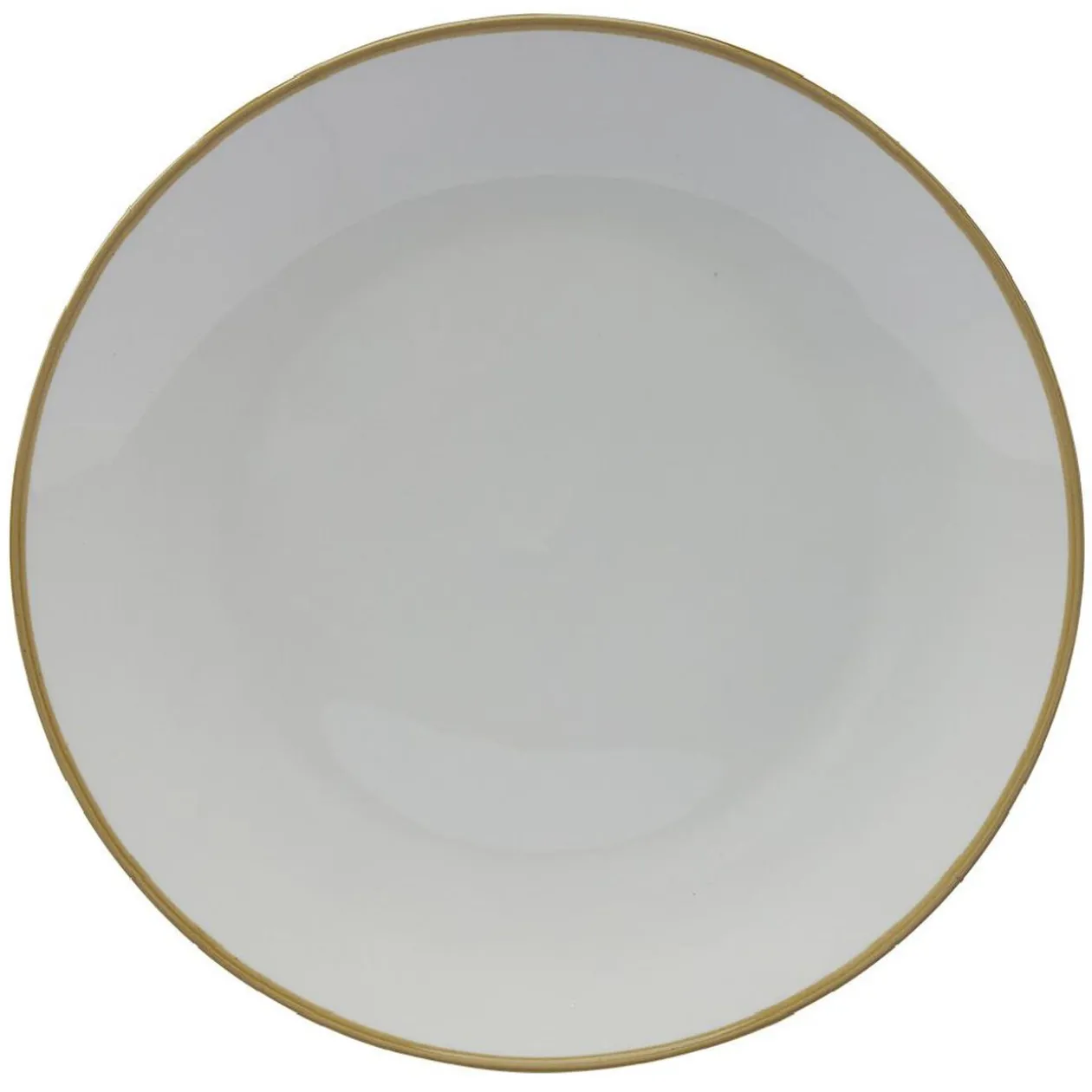 Ce service composé de 4 assiettes blanches avec liseré coloré sur le bord, noir, bleu, jaune et gris, sera du plus bel effet en toutes occasions.