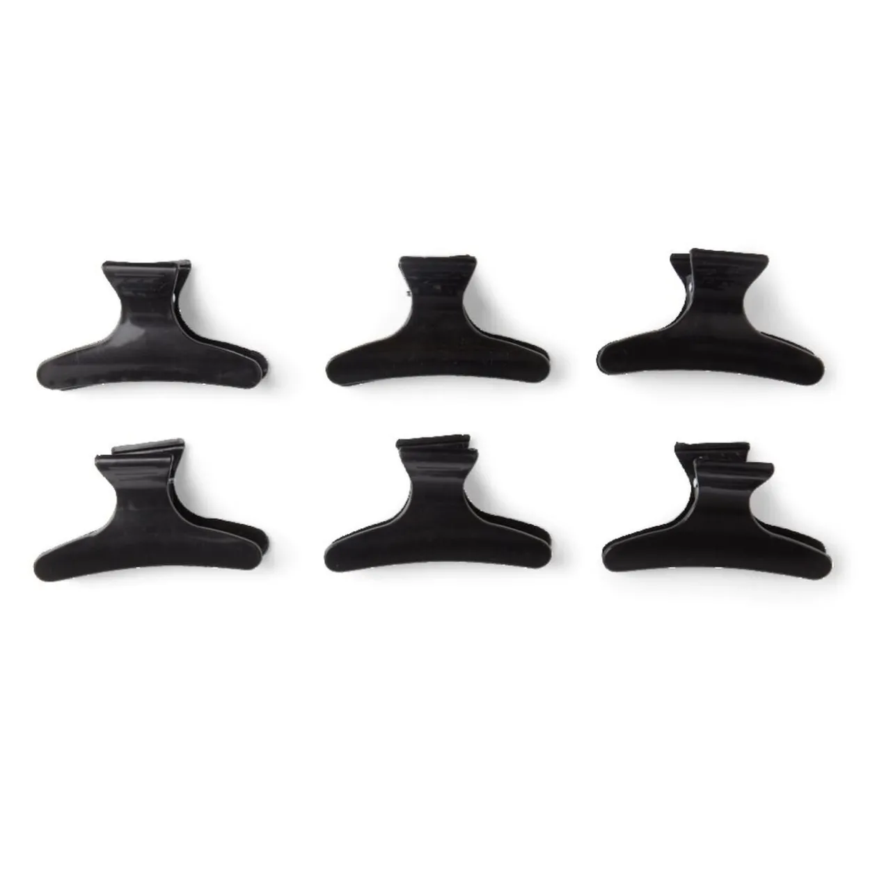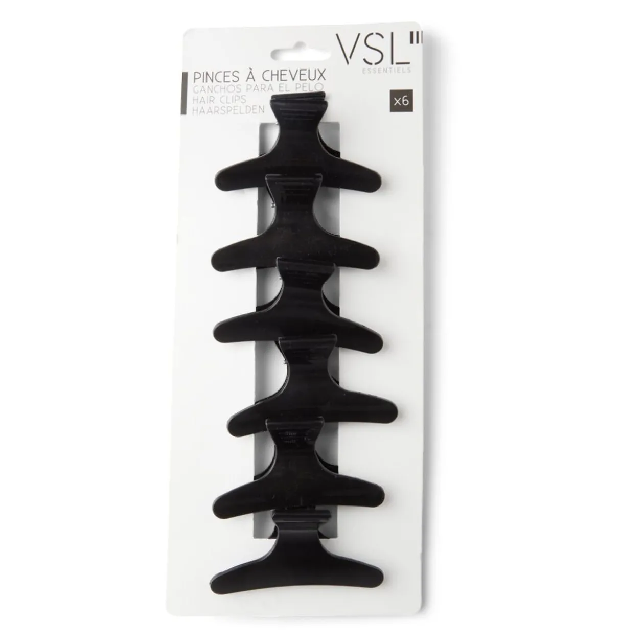 Lot de 6 pinces à cheveux en plastique noir, essentielles pour une coiffure impeccable.