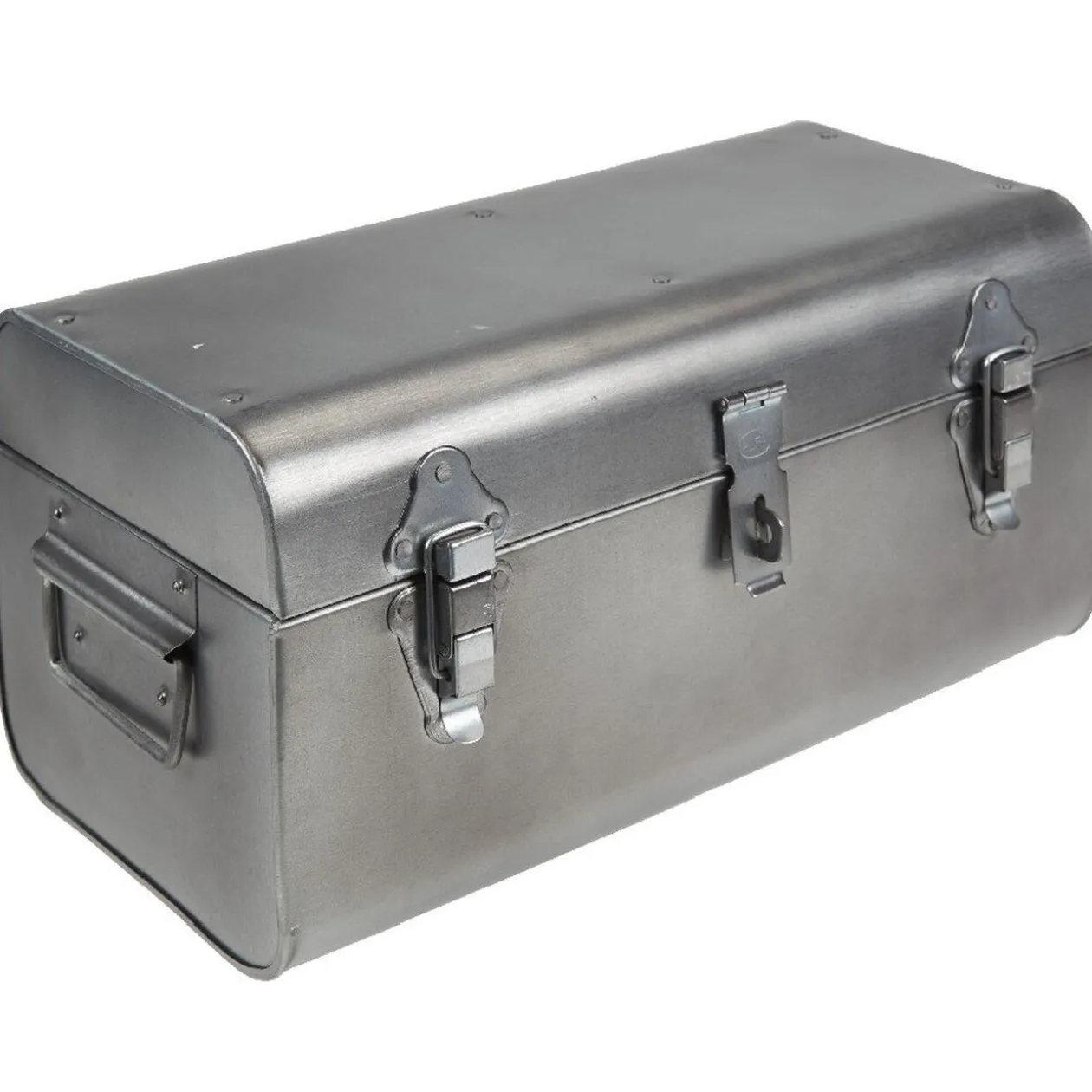Pratique et déco, optez pour cette malle en fer dotée de deux fermetures à levier à l’ancienne pour ranger vos outils et accessoires de travail.