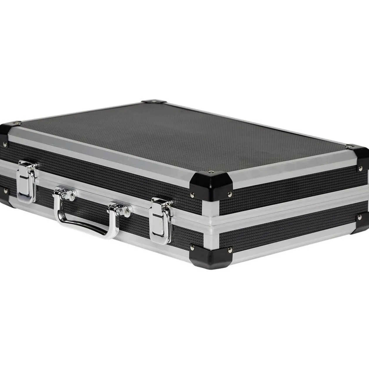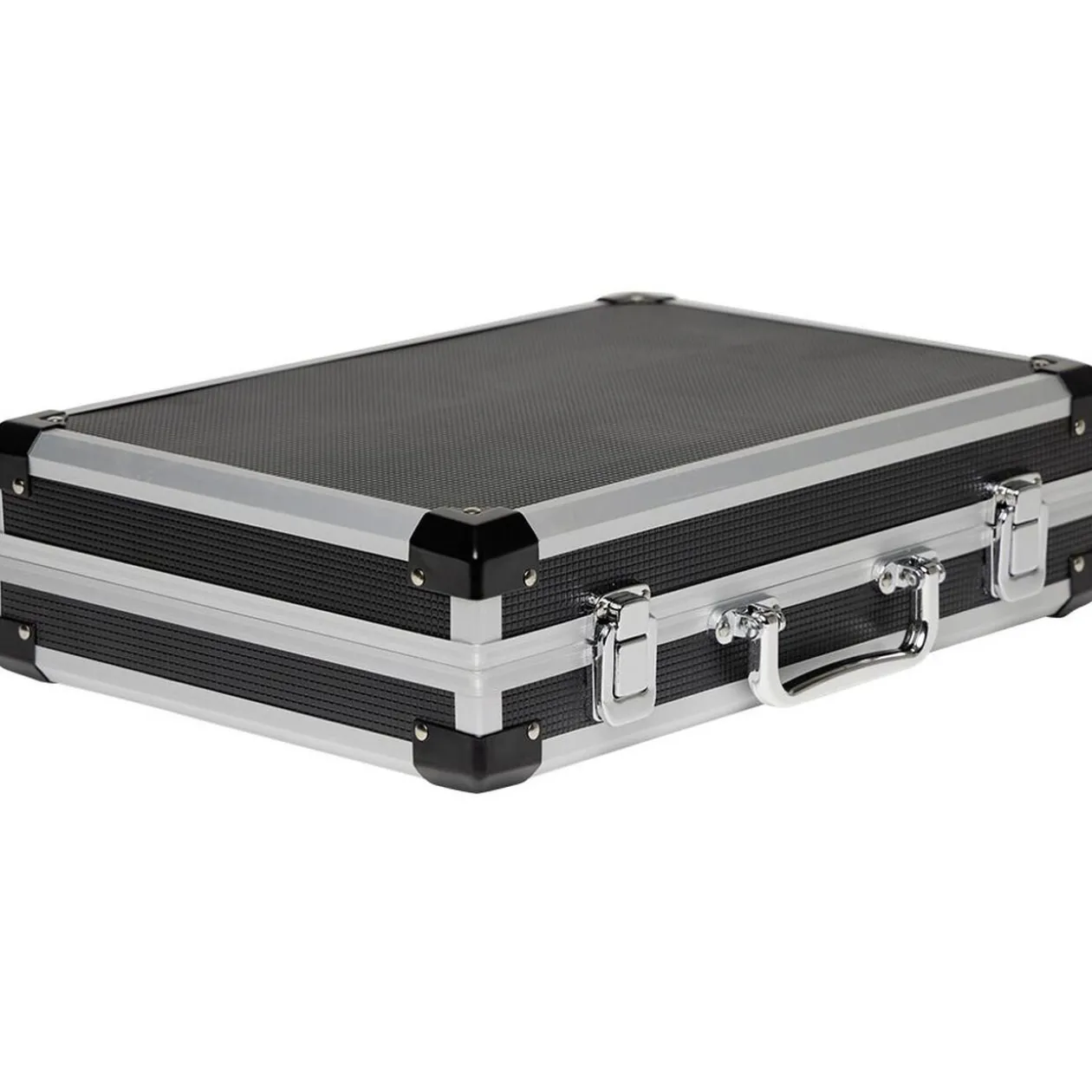 Mallette de mécanicien en aluminium incluant 125 pièces dont 6 clés mixtes, 4 tournevis, 1 tournevis porte-embout, 1 pince multiprise, 1 clé à molette, 1 clé à cliquet, 25 douilles, 56 embouts, 16 clés hexagonales, 2 barres d’extension, 1 barre en T coulissante, 10 serre-câbles et 1 adaptateur.