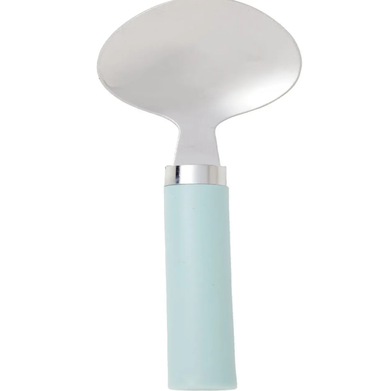 Ménagère pour 4 personnes composée de 16 couverts en inox avec manche en plastique gris ou vert d’eau.