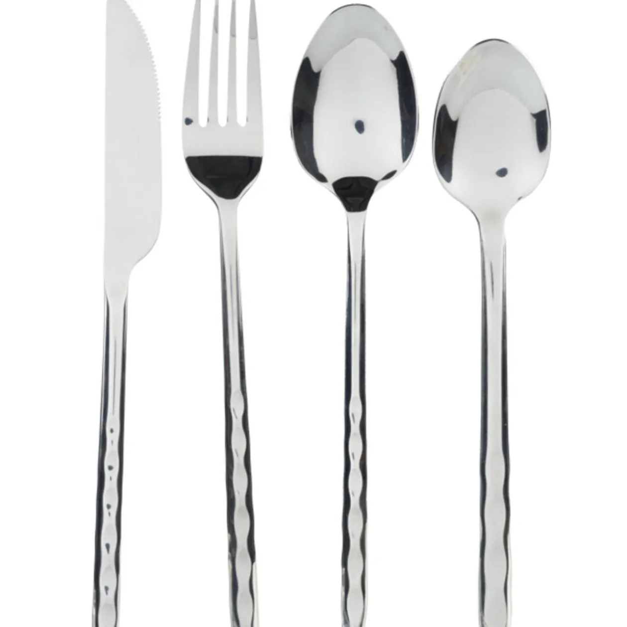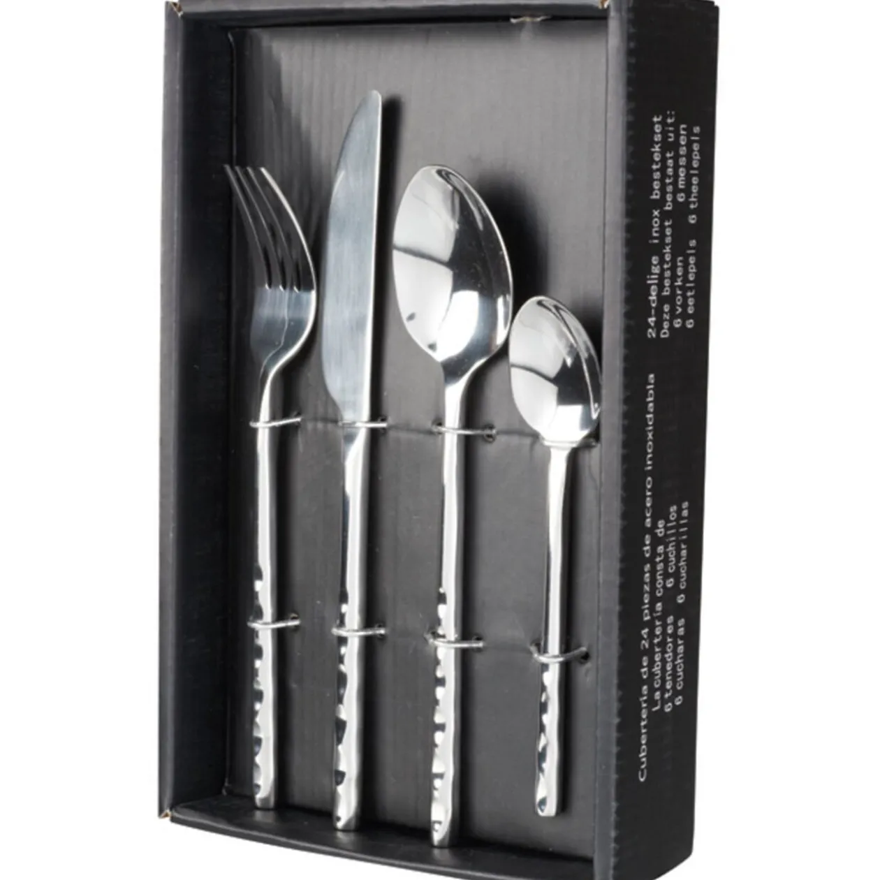 Ménagère 24 pièces inox comprenant 6 fourchettes, 6 cuillères à soupe, 6 couteaux et 6 cuillères à café.