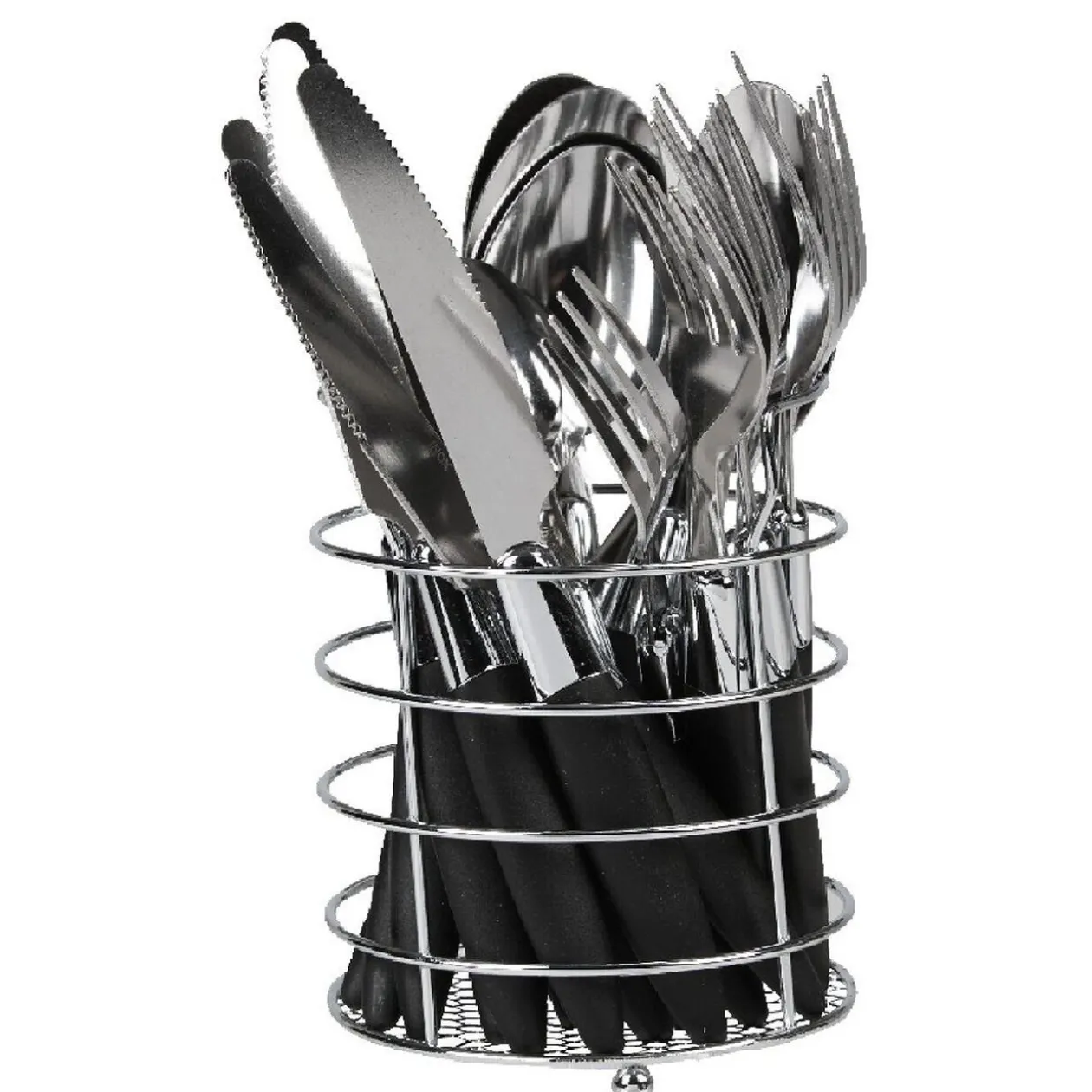 Comprend 6 couteaux, 6 cuillères à soupe, 6 fourchettes et 6 cuillères à café.