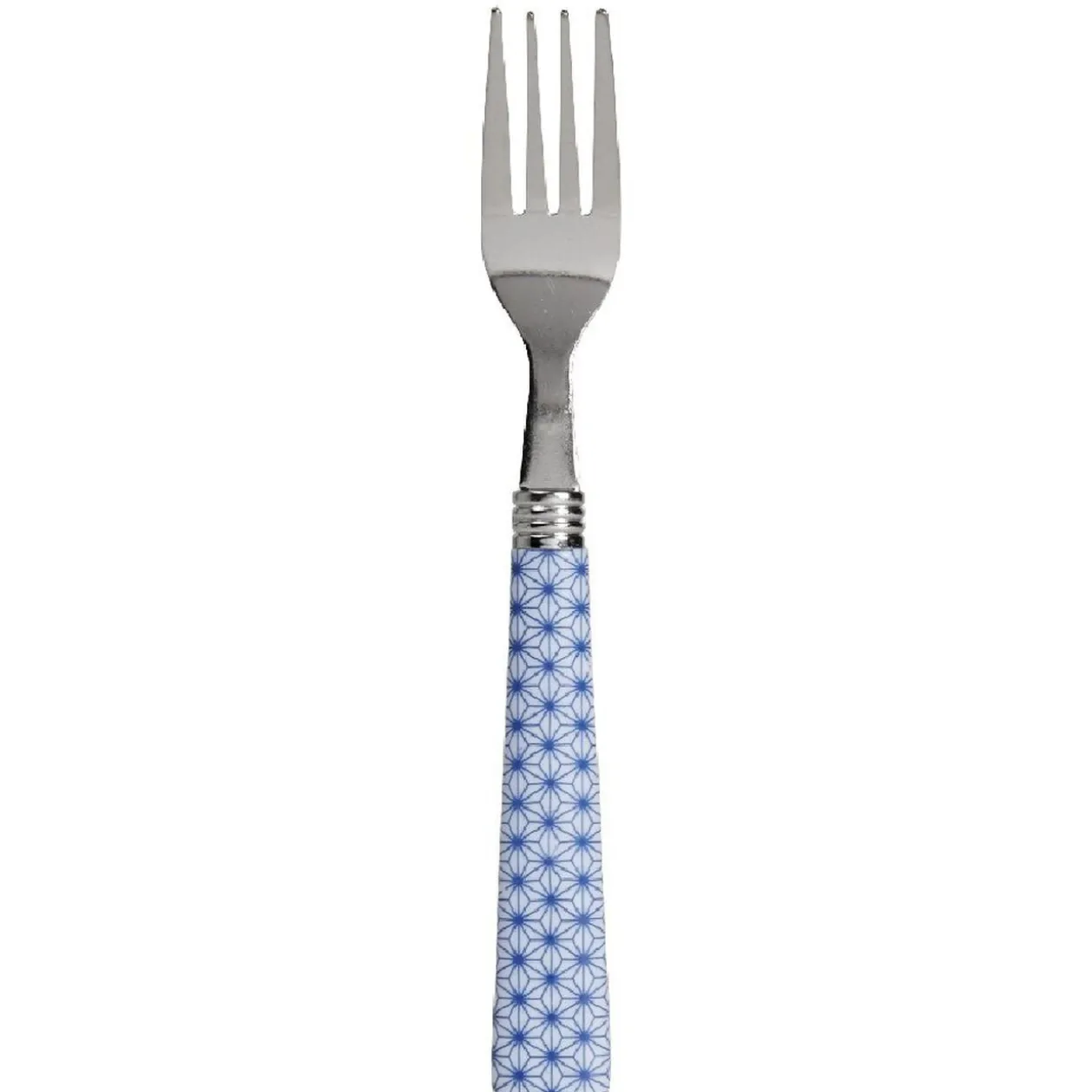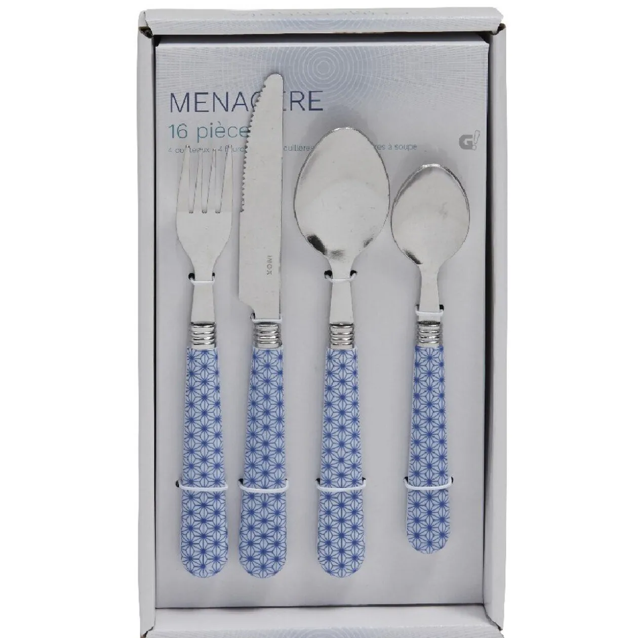 Cette ménagère avec 16 couverts bleus effet mosaïque comprend :