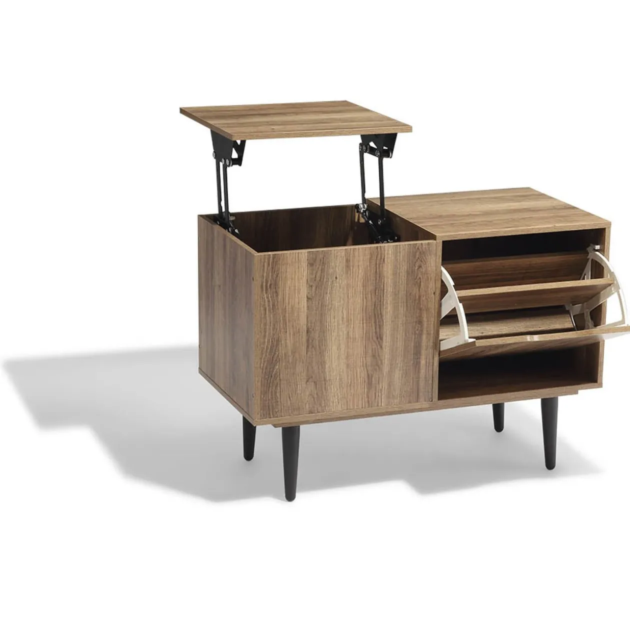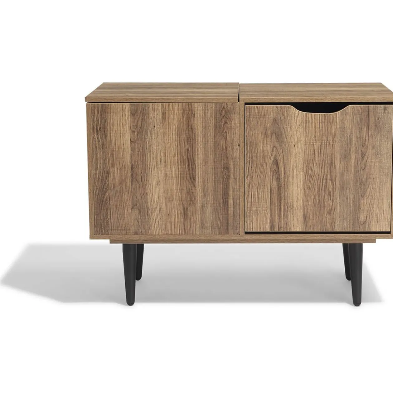 Pour tous les amoureux de styles rétro et de designs tranchés, le meuble à chaussure Fargo a quelque chose de précieux et d’unique à vous offrir ! Sa structure en panneau de particule comprend un tiroir à plusieurs compartiments ainsi qu’un grand coffre pour ranger vos chaussures. Avec tous ces rangements, vous avez de quoi stocker jusqu’à huit paires différentes ! Le meuble à chaussures Fargo tient sur des pieds métalliques de couleur noire pour ce soupçon d’assurance et de modernité qui plaît à tous, mais son design général est beaucoup plus proche de l’ambiance années 50, avec sa couleur de bois assombrie et les lignes carrées et précises de son design. Il est conseillé de coupler ce meuble avec d’autres merveilles de la gamme, comme la table basse ou le bureau Fargo.