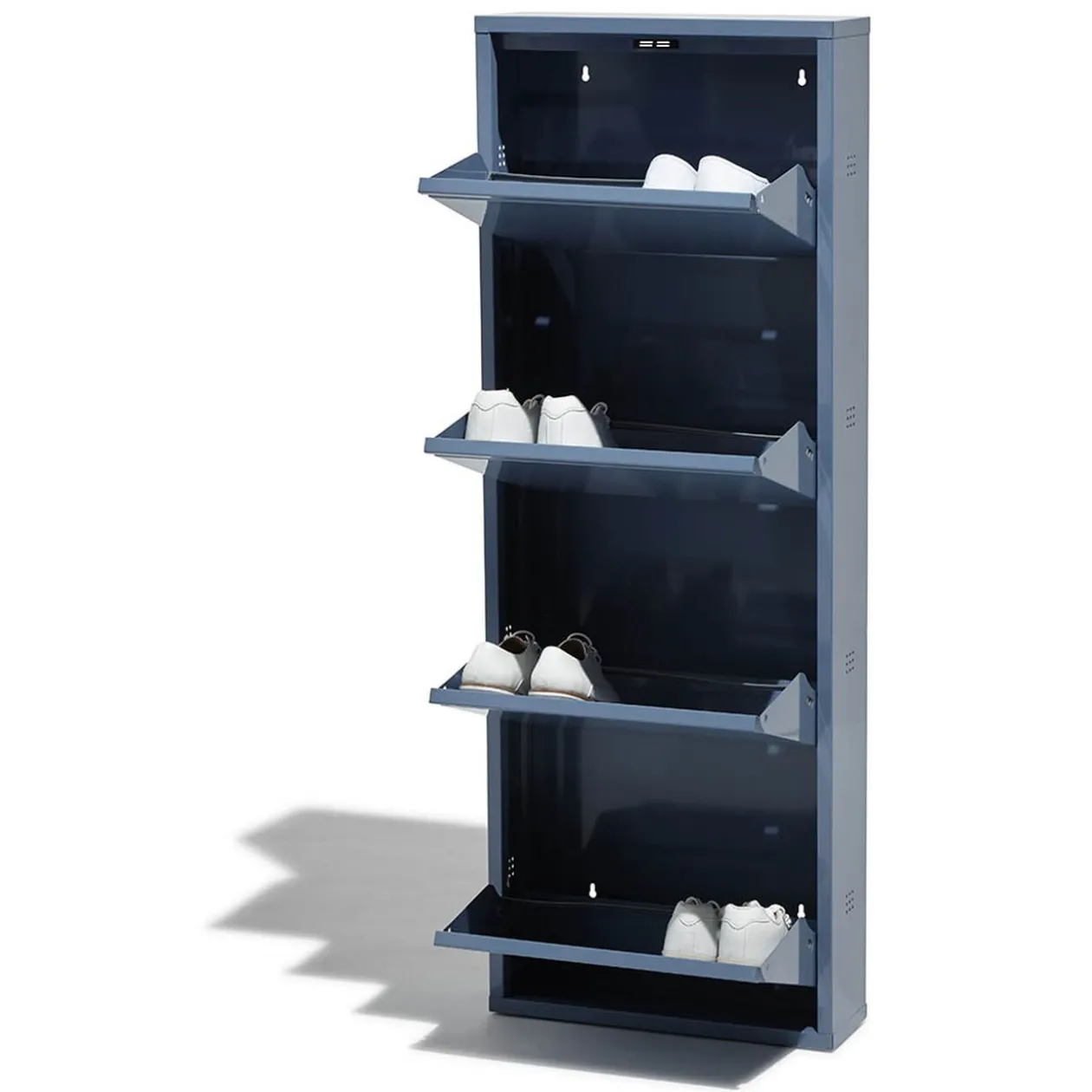 Besoin d’un endroit pour ranger les chaussures de toute la famille ? Le meuble à chaussures Pittsburgh est le rangement familial par excellence. Construit sur une structure métallique basée sur un design vertical, il garantit que chacun puisse bénéficier de son propre espace personnel. En effet, ce meuble est divisé en quatre étages, donc les grands pourront mettre leurs chaussures tout en haut, et les petits en bas ! Vous pouvez ranger jusqu’à douze paires de chaussures dans le meuble Pittsburgh, et sa belle couleur bleu orage apporte une petite touche de couleur, idéale pour égayer une pièce ou un couloir. Et si vous préférez voir le meuble à chaussures Pittsburgh sous un autre jour, bonne nouvelle, il est disponible en quatre autres couleurs !